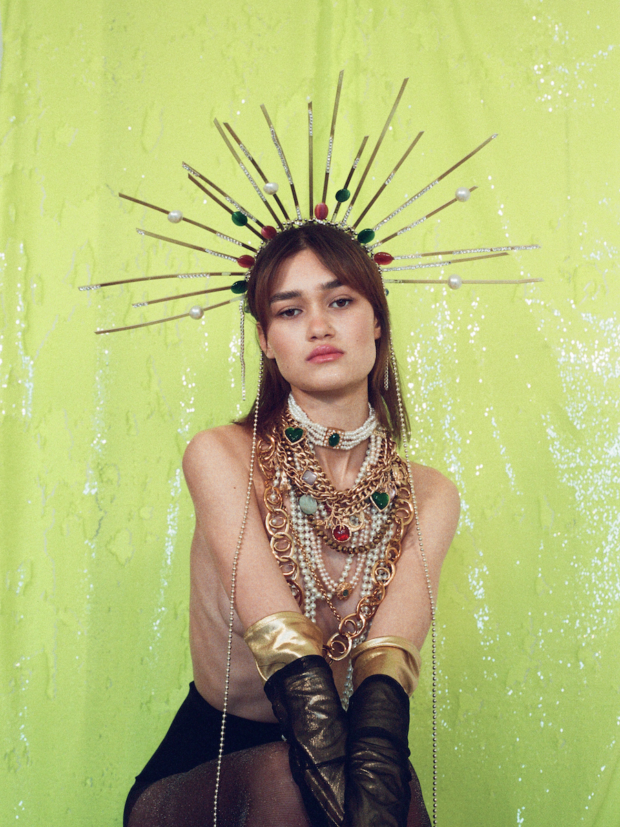 A KALTBLUT exclusive. Photography by Gwen Riskin. The model is Zained Ghedira. Styling by Siham El Krete. Brands used are Siham El Krete Hat creation, Undiz, Balabooste, Zara, Chloé, Calzedonia, Sancho, Les Fantome Paletteus, Bottega Veneta, Maison Michel, Lovisa, Gucci, Isabelle Marant.