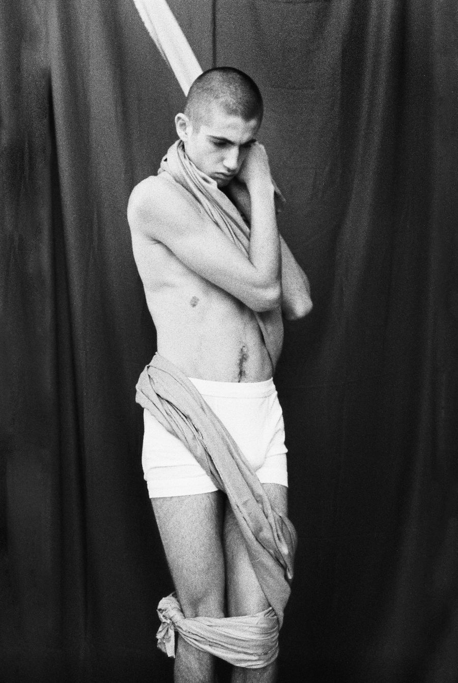 A KALTBLUT exclusive from Paris. Model is Solal Zaoui. Photography by two French photographers: Noémie and Jérémy. They say: ” Jérémy was already working as a light director, and Noémie as a model and dancer. We felt in love, and created Jérémy & Noémie to work together.” Production assistant is Elise Van Effenterre.