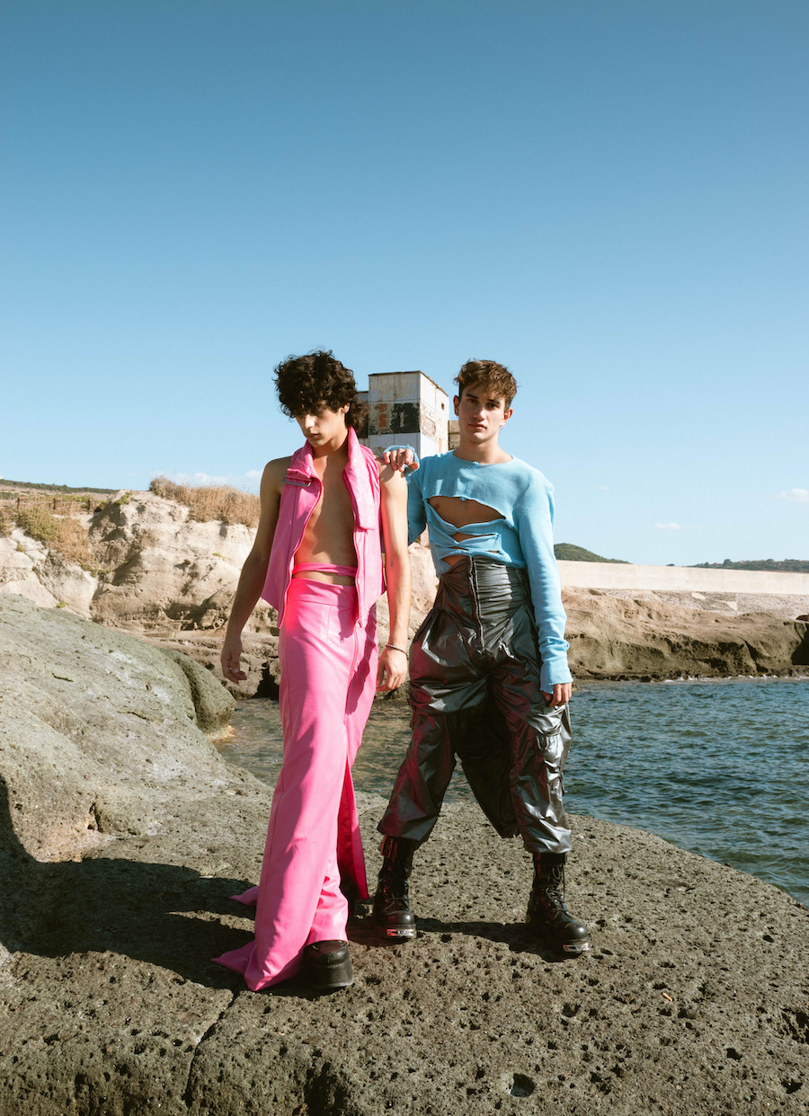 A KALTBLUT exclusive. Photography by Ilaria Sini. Models are Davide and Athreya. Styling by Manuel Casati “By these photos we want to tell the story of two boys who meet each other on a beach in a sort of dystopian dimension to experience a very personal tenderness.”