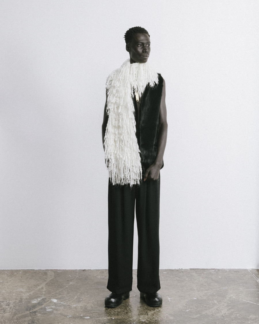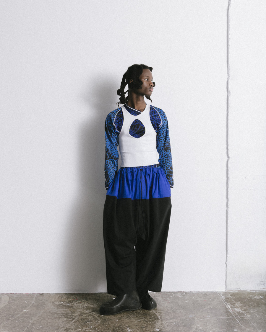 Founded in 2018 by Adeju Thompson, Lagos Space Programme is a genderfluid Nigerian design label that intricately explores the convergence of Yoruba heritage and futuristic cultural creation. With a commitment to craftsmanship and a deep respect for heritage, the label channels cultural philosophies through a queer lens, modernizing traditional techniques in innovative contexts.