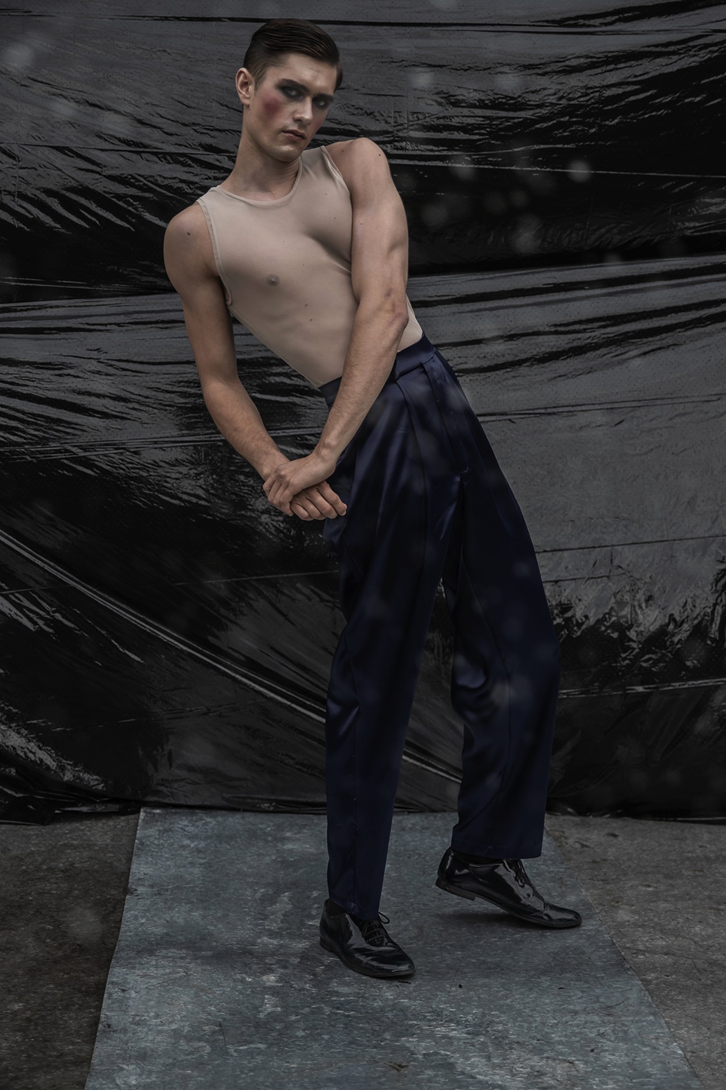 A KALTBLUT exclusive menswear editorial featuring fashion by Piotr Popiołek. Photograohy by Ola Bodnaruś. del is Paweł signed at Embassy Models. Make-up by Wiola Kowalczyk – Studio Pretty Women. Set Design by Damian Jaworski.