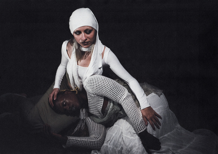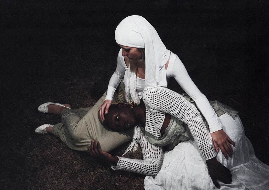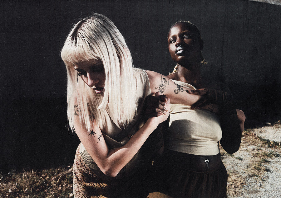 A KALTBLUT exclusive. Photography by Jean Michel Conyedo. The models are Annabel Huijberts and Demian Savane. Makeup and hair by Dani Arias Botella. Styling by Iman El knikssi using Vivienne Westwood, Bogner, Colombo, Norma Kamali, Moncler, Vagabond, and Chanel. Photography Assistance by Wiebke Tonn.