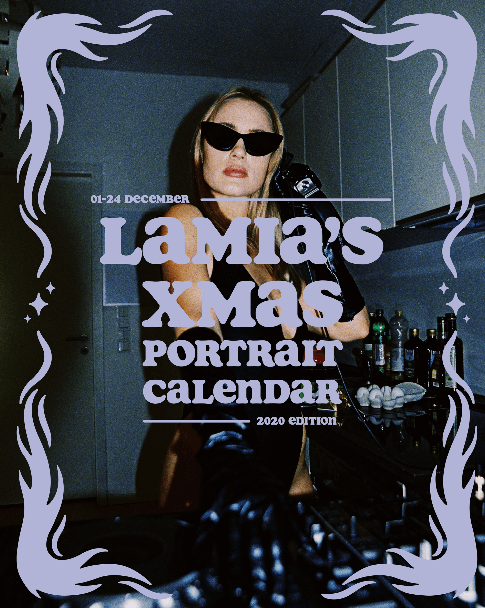 Photographer Lamia Karić unveiled the X-Mas Portrait Calendar! “The calendar is starting tomorrow on my social media channel and will be sold as a fanzine later this month. I met with 24 creative people here in Berlin and shot them all on 35 mm film in their homes or studios. Some of the names that you might recognize are Stella Bossi, Scotty the Blue Bunny, Freddy K, Tina Dubrovsky, Cera Khin, Chiqui Love from Berlin Stripper Collective, Lina Bembe… It’s a good mix with writers, photographers, DJs, strippers, painters, pornstars etc. All the graphics are made by Johannes Helgelin from Hannes&Johannes animation studio.” www.instagram.com/lamiakaric