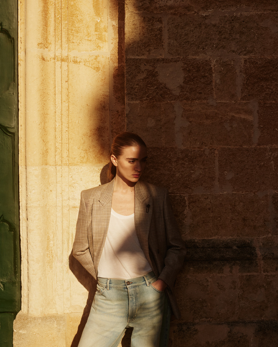 The aesthetic for this season draws from the relaxed tempo of the French Riviera, interpreted through a modern lens devoid of nostalgia. Key pieces include blazers that defy traditional structure, offering a casual take reminiscent of cardigans, yet tailored with a sophisticated double-breasted design. Styled with rounded trousers and open-necked shirts layered over visible tank tops, the collection focuses on versatility and personal expression, empowering wearers to curate combinations that reflect their moods and desires.