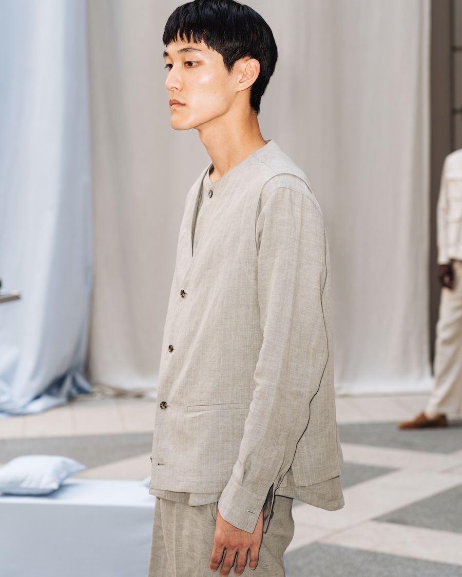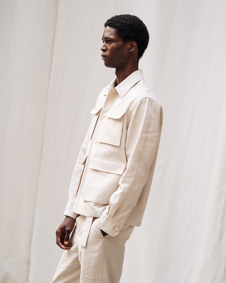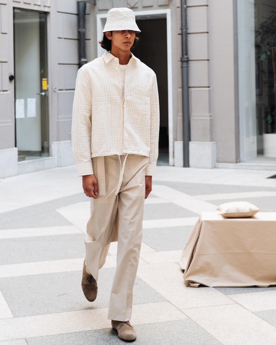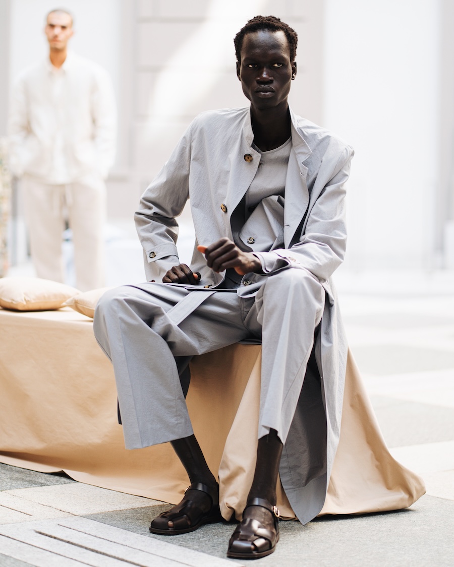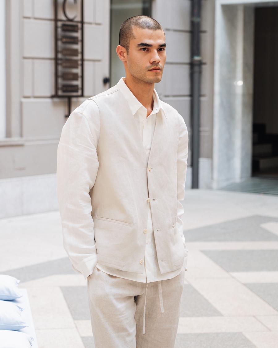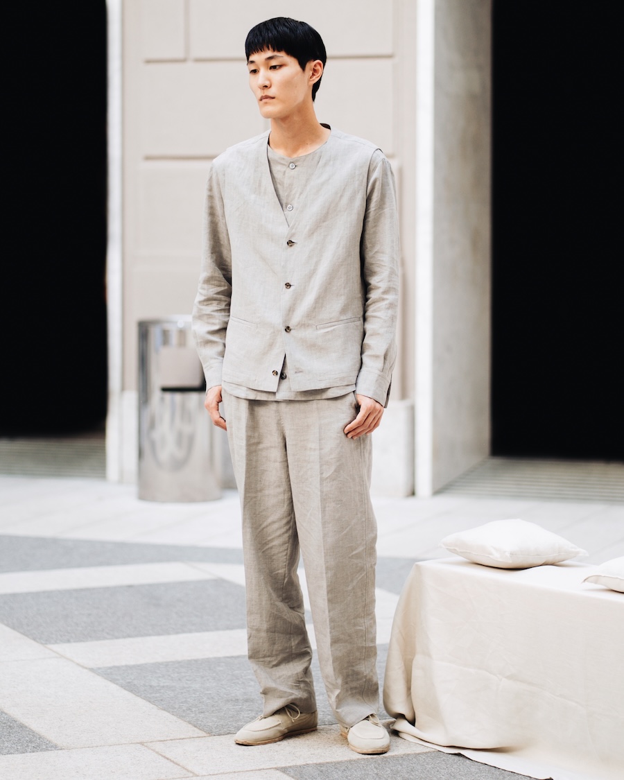 Luxury finds a new voice in Nativa, shedding ostentatious embellishments to reveal the “perfection of subtlety,” reminiscent of Junichiro Tanizaki’s poetic reflections. The dialogue between tradition and innovation gracefully unfolds through a rich tapestry of fabrics. Cashmere wool harmonises with avant-garde fibres like modal and seaweed, embodying an eco-conscious approach that caresses the skin like silk. Each carefully curated material—be it wool twill, cotton, or linen—subtly envelops the wearer, offering an effortless yet refined aesthetic.