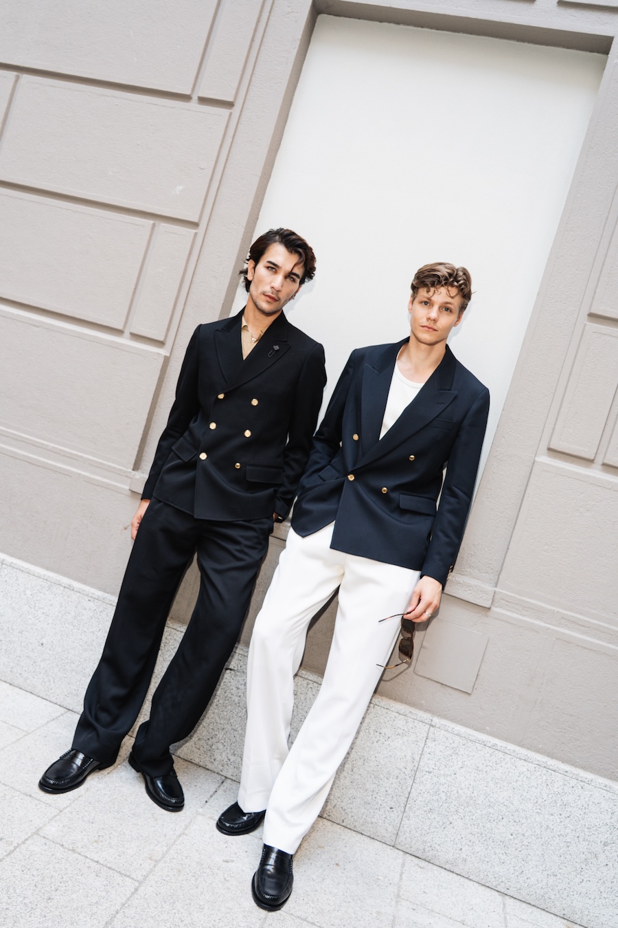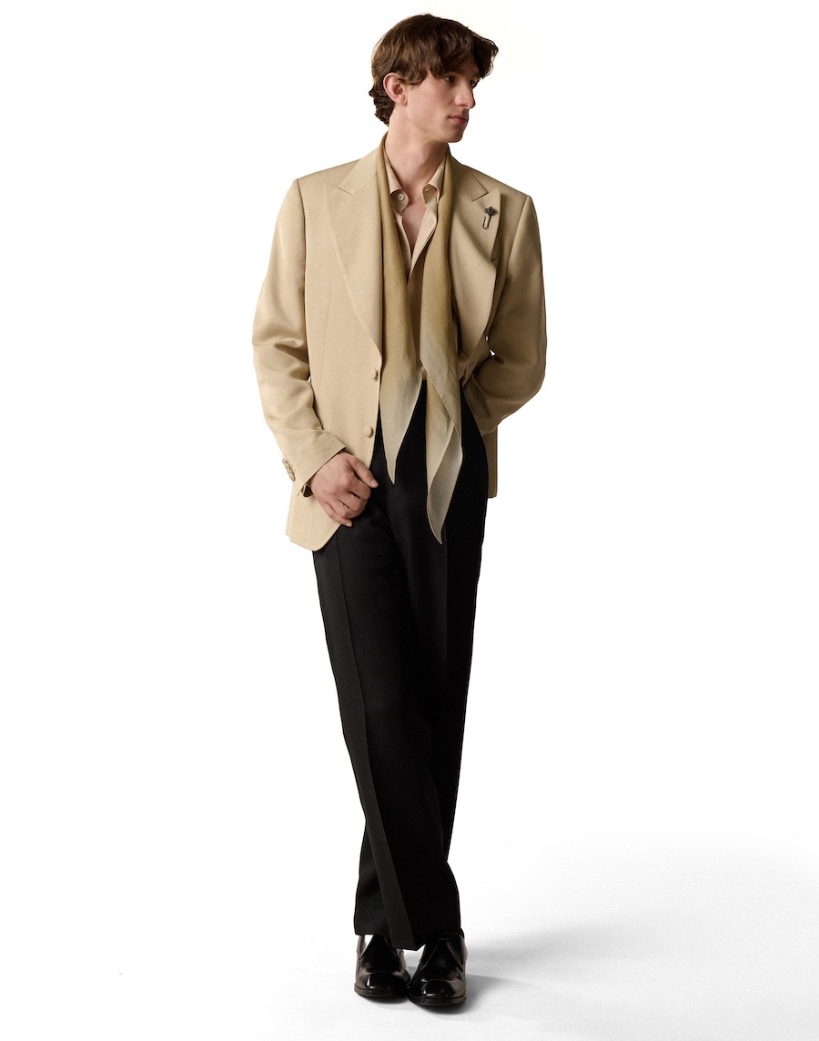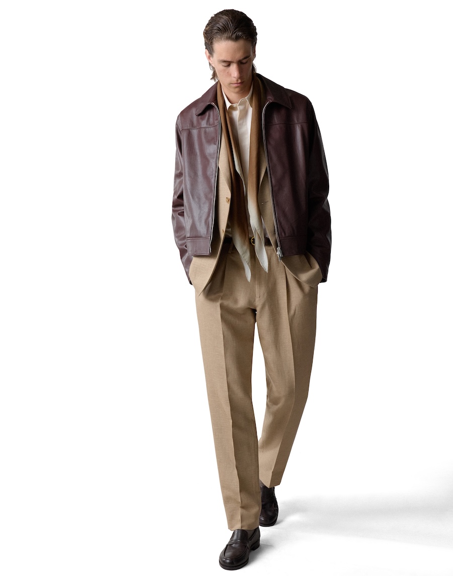 Silhouettes within Nativa celebrate a return to purity, blending refined structures with relaxed silhouettes that eschew excess. The collection is anchored by impeccable blazers—both single and double-breasted—as well as trench coats, cardigans, and chic safari jackets. A standout piece, the tuxedo with shawl lapels, reclaims vintage refinement with its striking black piping, proving that elegance never truly fades. Accessories, handcrafted to perfection, reflect a legacy of artisanal precision; from sophisticated footwear to understated belts, each piece carries a story.