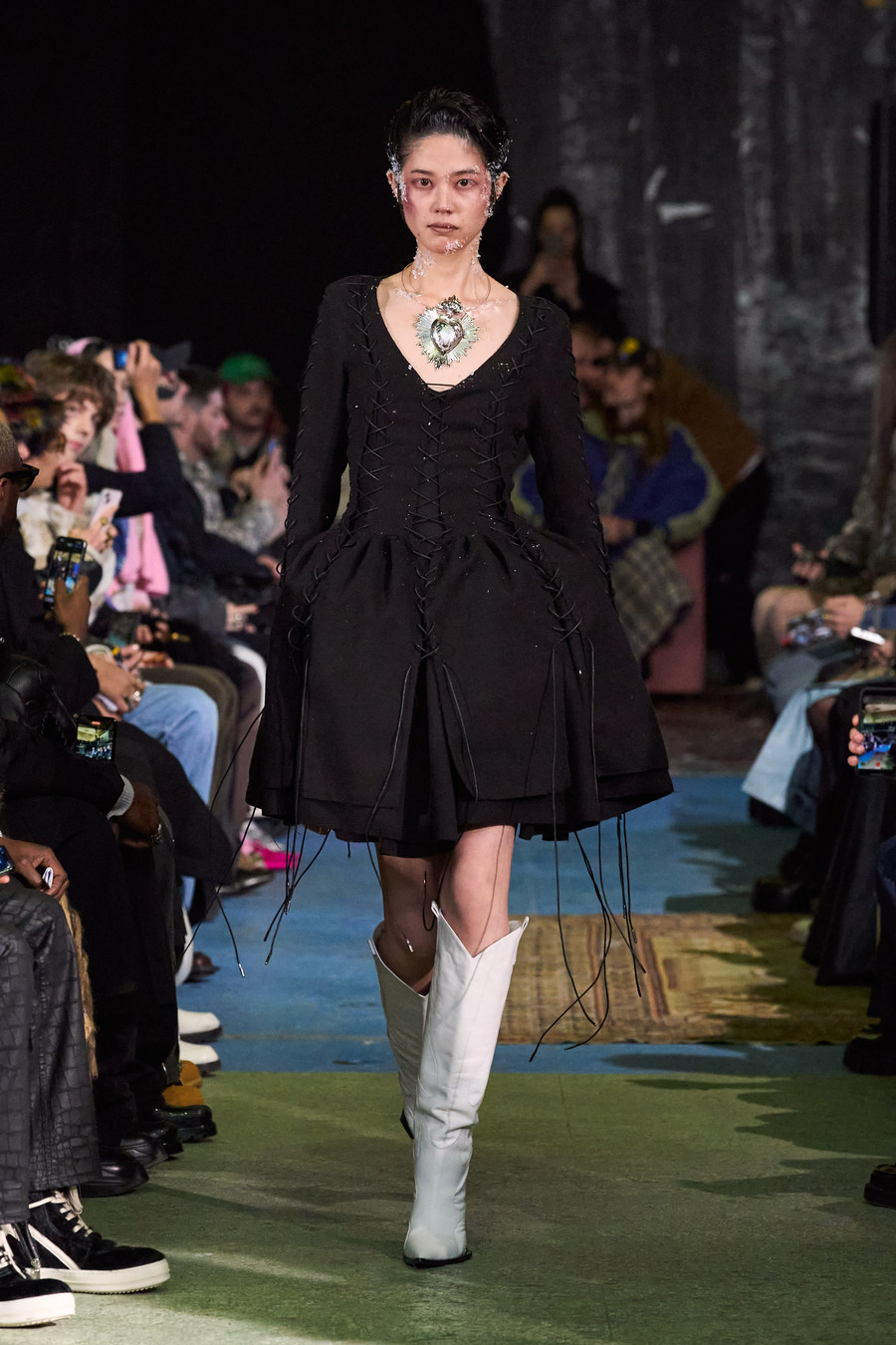 LARUICCI debuts the AW24 collection at Paris Fashion Week, fusing dandy tailoring with a desert snow vibe, anchored by standout jewellery. Striking a balance between tradition and rebellion, the brand merges tailored sophistication with punkish flair, crafted between the fashion hubs of New York City and Paris.