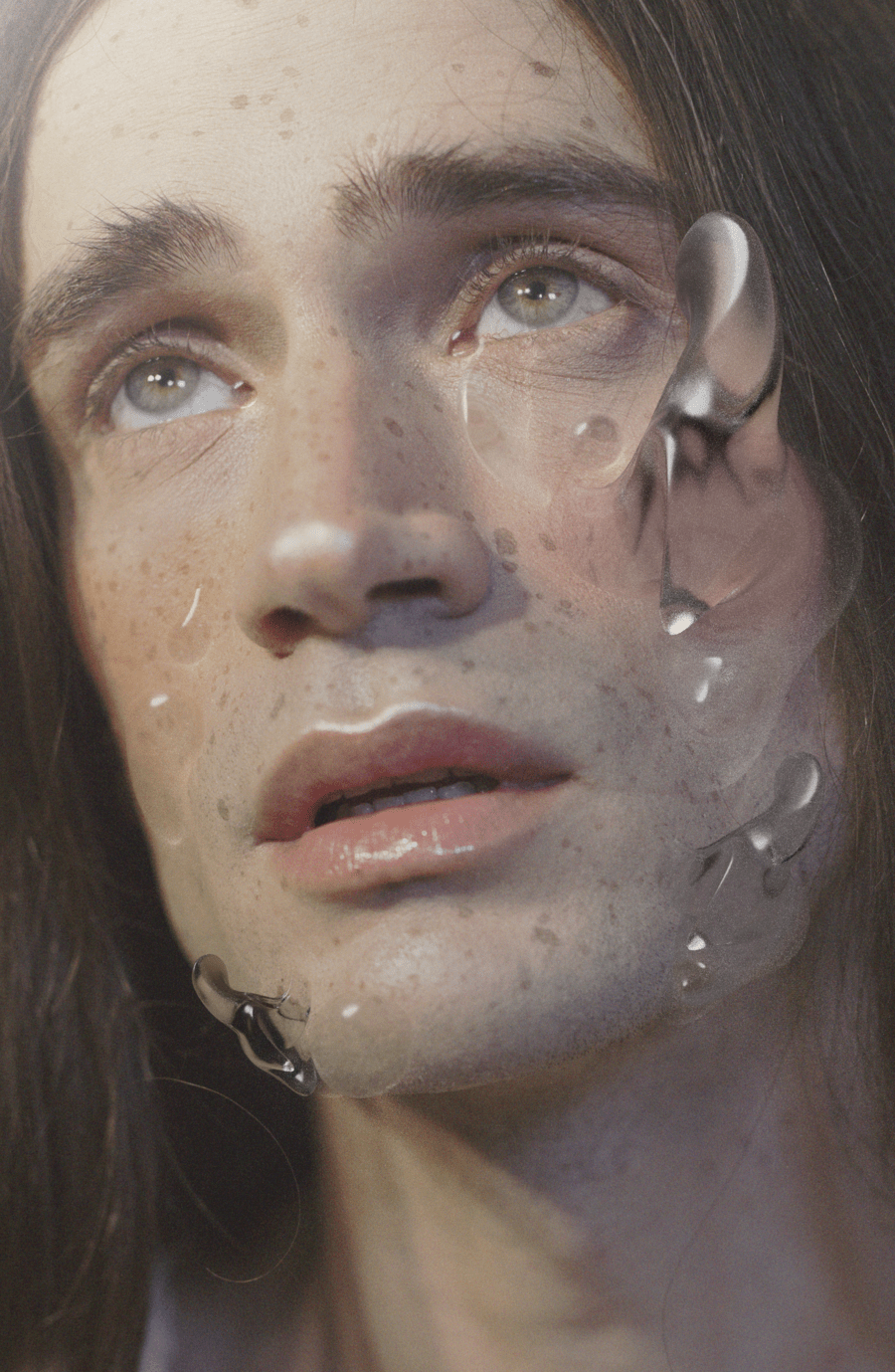 A KALTBLUT exclusive editorial. Photography by David Cardona. Model is Artis Leonar. Styling by Rodrigo Falero & Artis Leonar. Make up & Hairstyling by Berta Rodenas. Graphic design by Mikel Calo. 3D art by Aira Sans. Text by Xeii Möri.