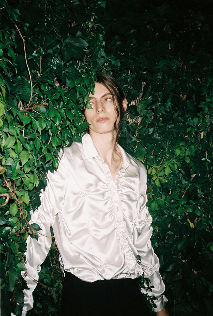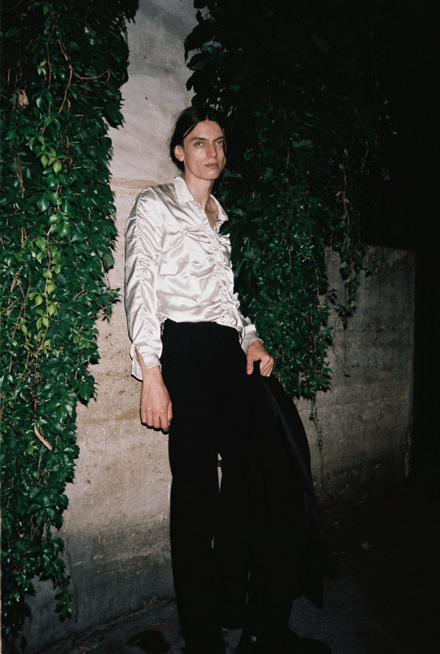 A KALTBLUT exclusive editorial. Photography by Angélique Canu. The model is Maxime Vidal signed at Castingvendi. Styling & Art direction by Eve Chen. Production by 33BIS. Brands used are Ruve, Theory, Gucci, Sonia Rykiel, Ninamounah, Archive, Peter and May, Marine Serre, Namacheko, and Coperni.