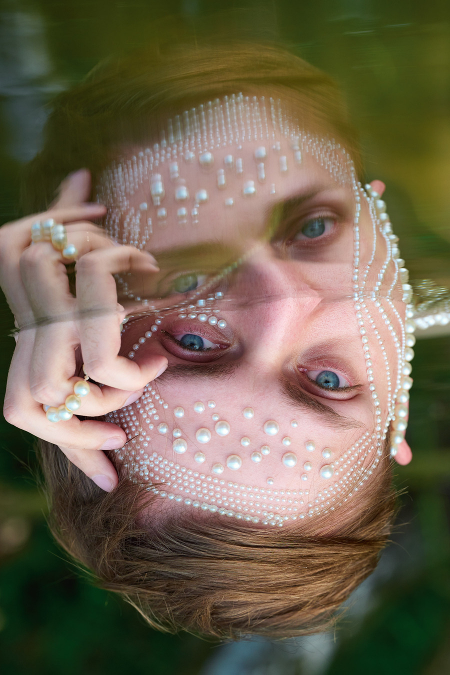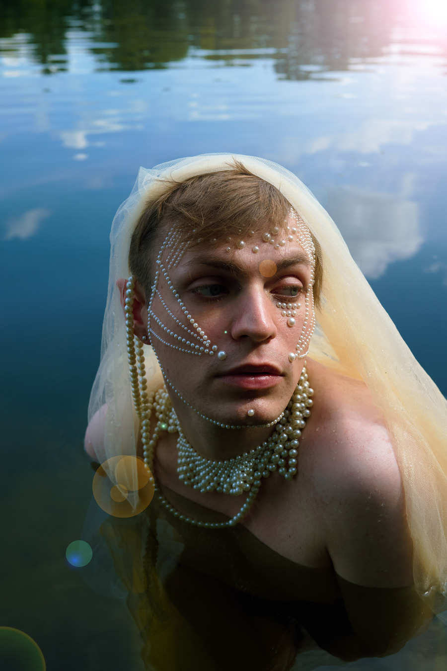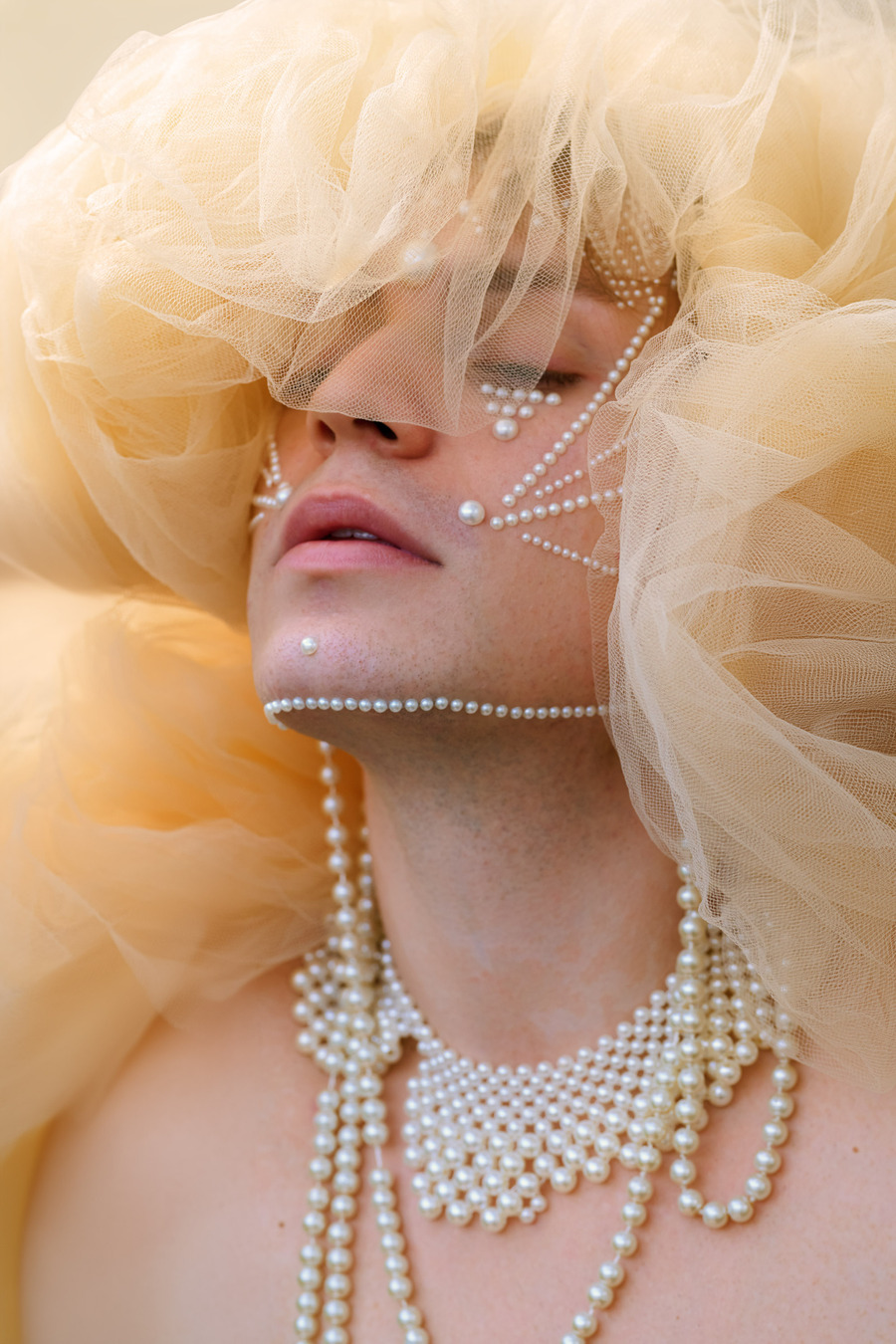 “My vision was to evoke a sense of fantasy. I adorned my model with pearls that dripped like liquid moonlight and draped him in soft veils of tulle that flowed like whispers in the breeze. Each shot became a moment frozen in time, an invitation to step into a dream where reality and imagination entwine.