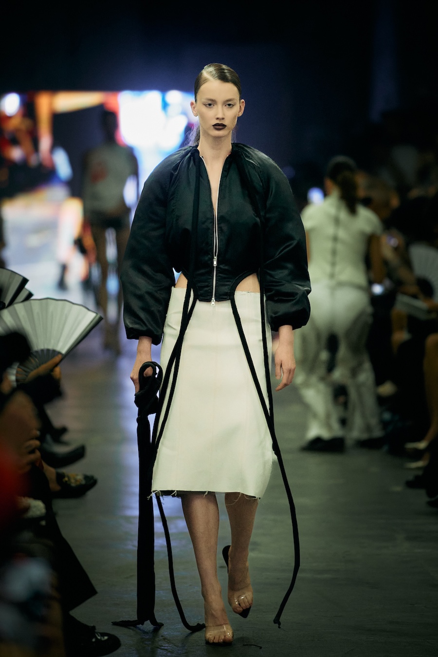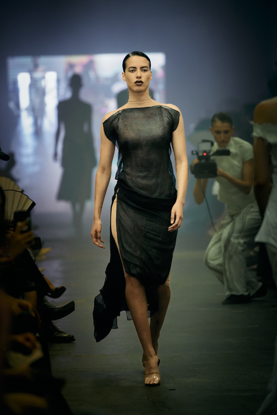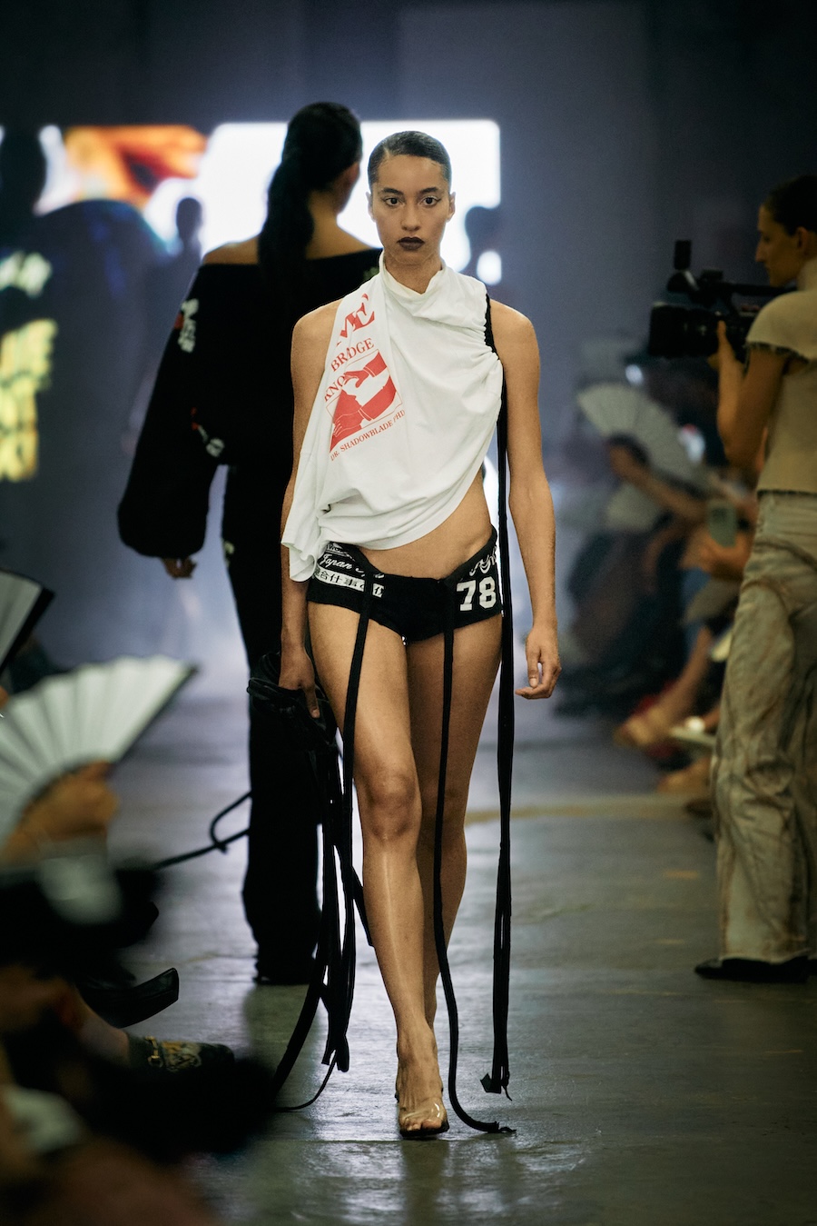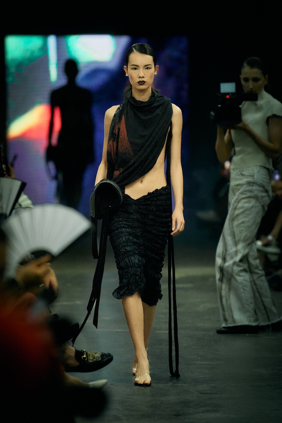 The show itself transcended mere presentation, evolving into a multi-sensory spectacle. A live camera captured the runway’s best moments and projected them throughout the venue, while a haunting soundtrack underscored the themes of the collection with an evocative monologue. The result? An emotional rollercoaster that deftly played with notions of strength and fragility, ease and rigidity, crafting a space for defiance wrapped in delicacy.