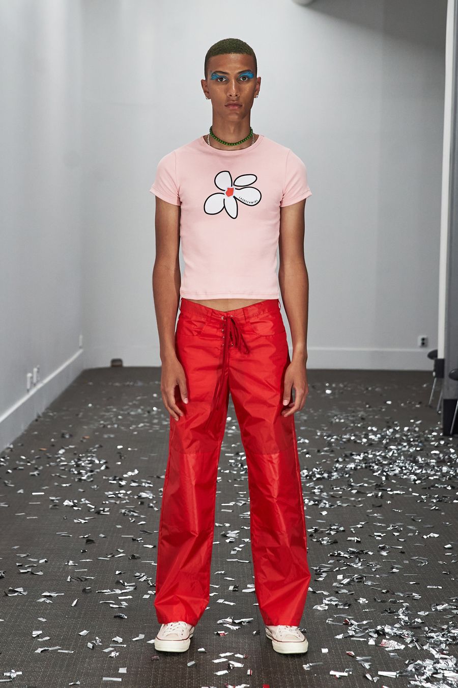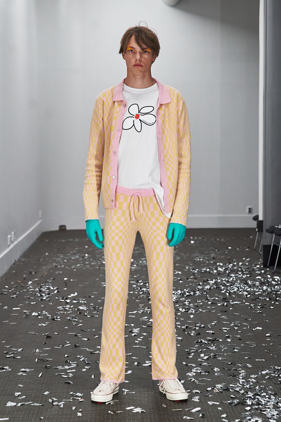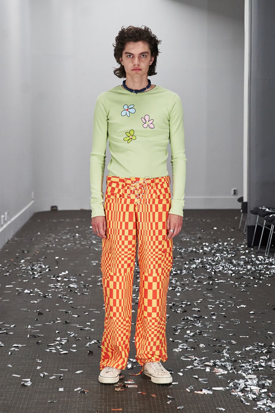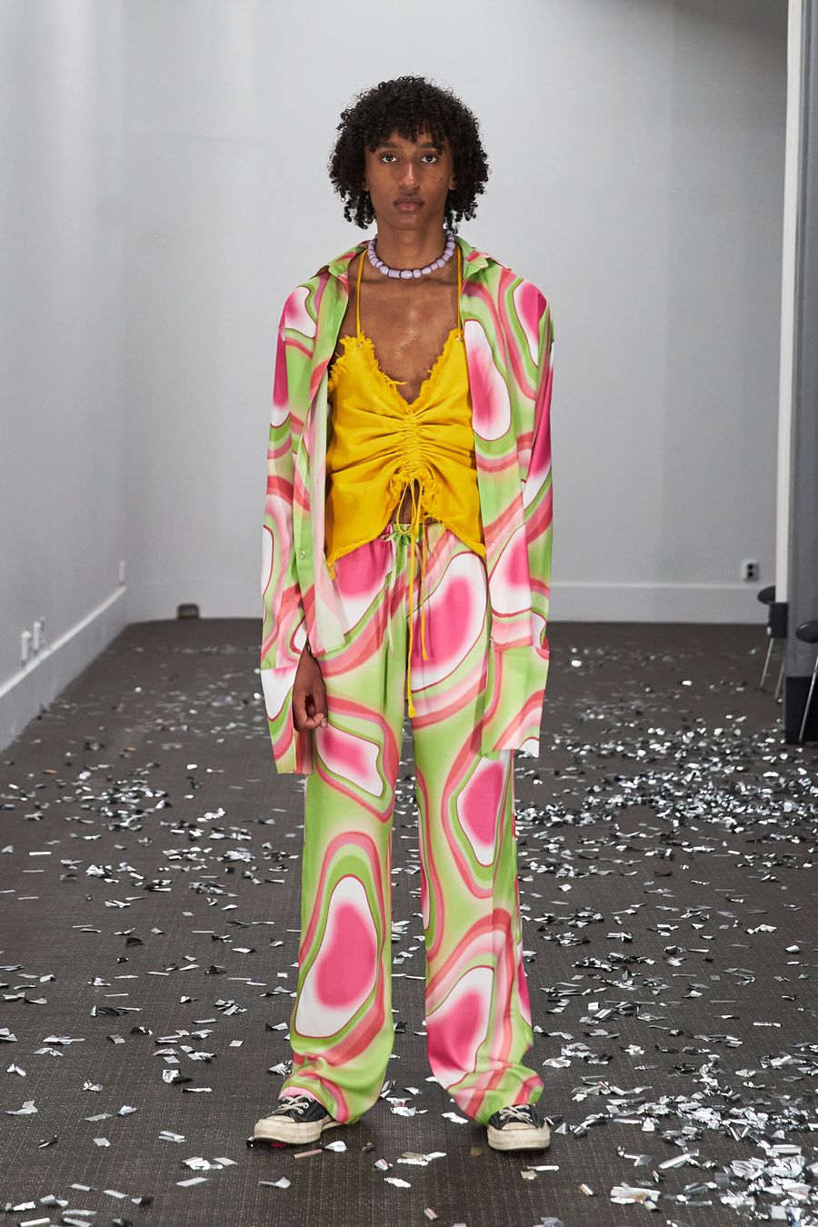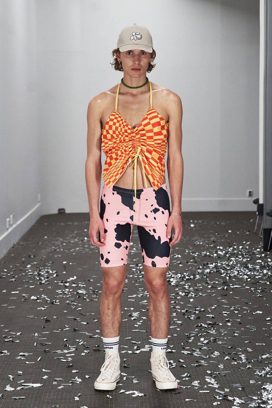 “The collection features an array of prints. The infamous cow print. Op- art. Naive daisy flowers. Psychedelic lava print. Oh, and there is some tie-dye. It’s very German techno in Los Angeles 2022. We added some butterfly tops, too, for your amusement. Fabrics, again, feature recycled PET bottles, super soft fluffy mohair knits, kinky patent and some sweaty sweats.”