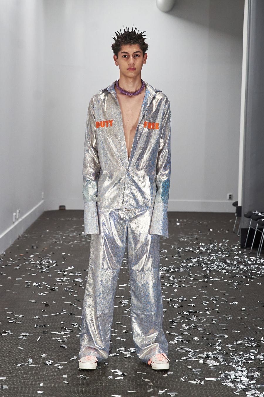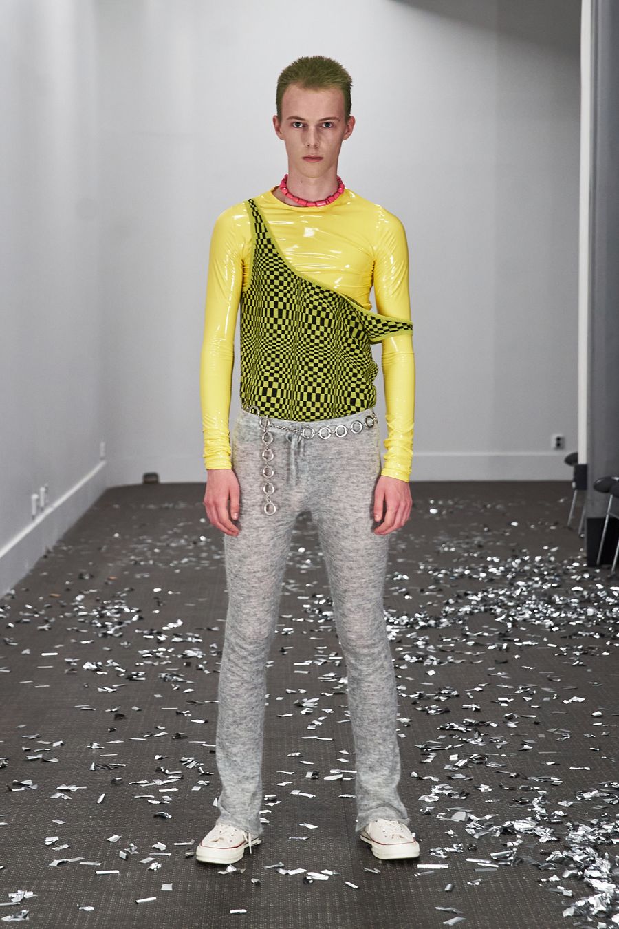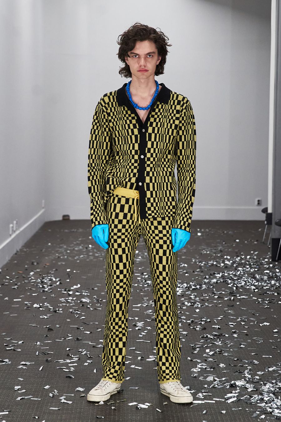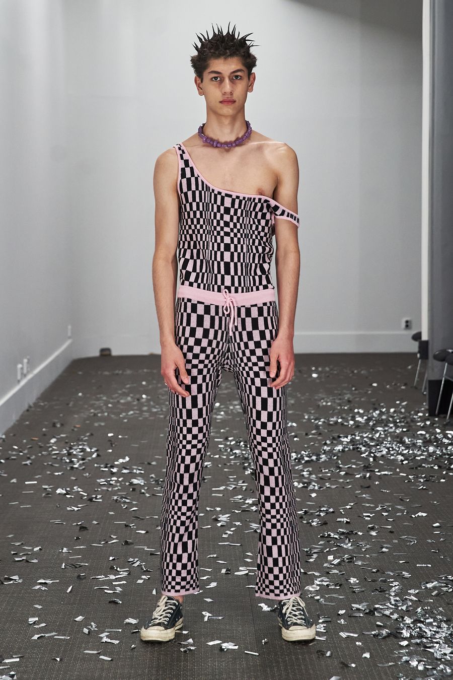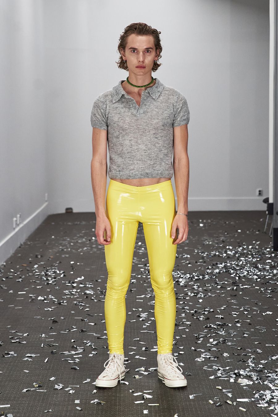 “The collection features an array of prints. The infamous cow print. Op- art. Naive daisy flowers. Psychedelic lava print. Oh, and there is some tie-dye. It’s very German techno in Los Angeles 2022. We added some butterfly tops, too, for your amusement. Fabrics, again, feature recycled PET bottles, super soft fluffy mohair knits, kinky patent and some sweaty sweats.”