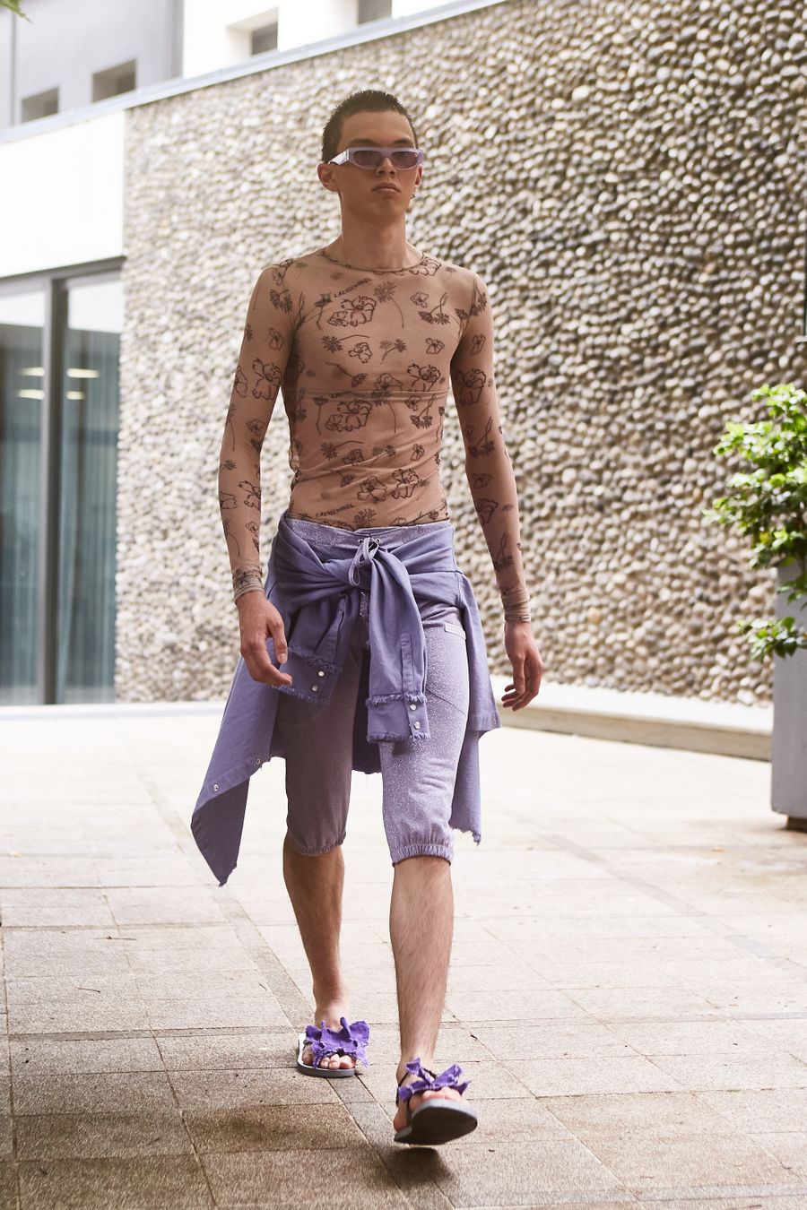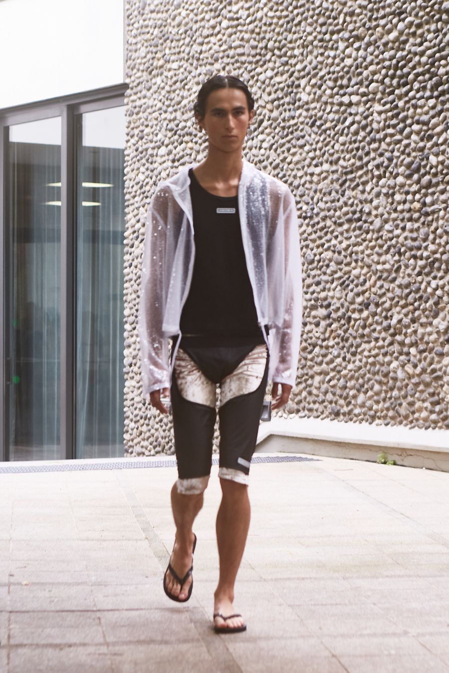 Garments feature fower scan prints contrasted with techno-inspired shapes. The colour