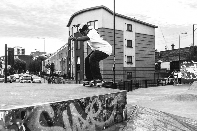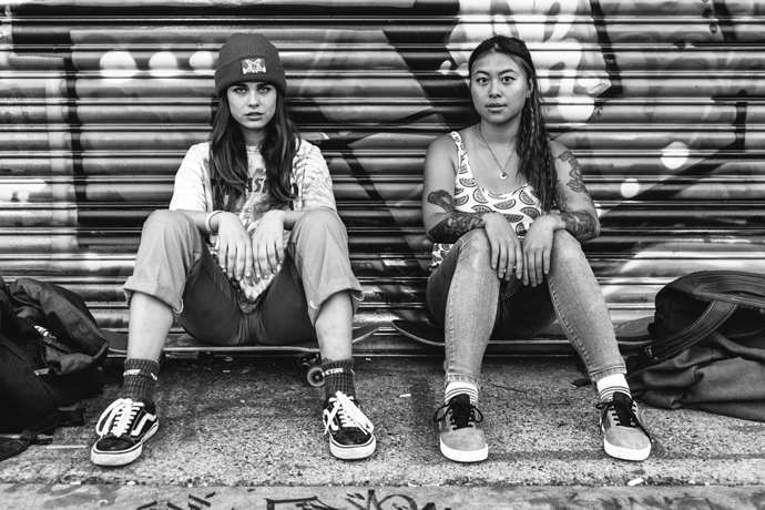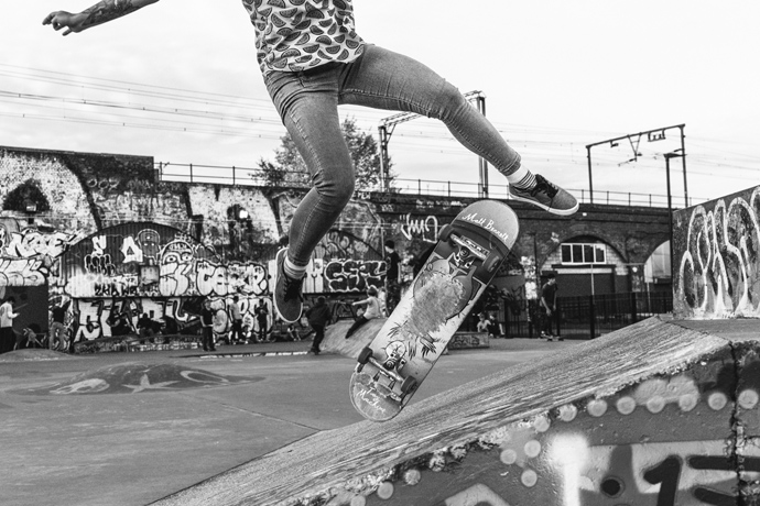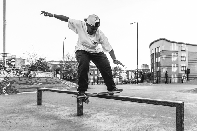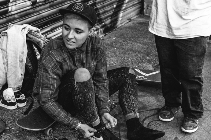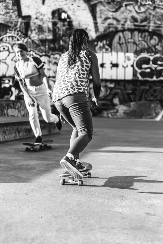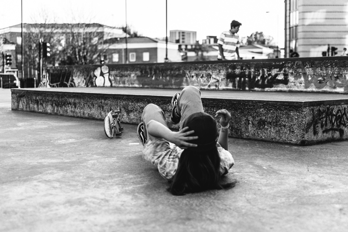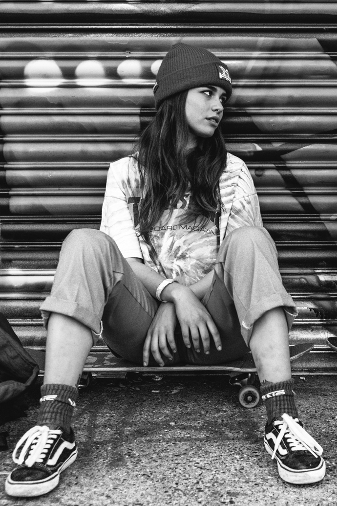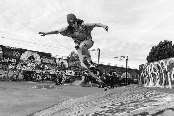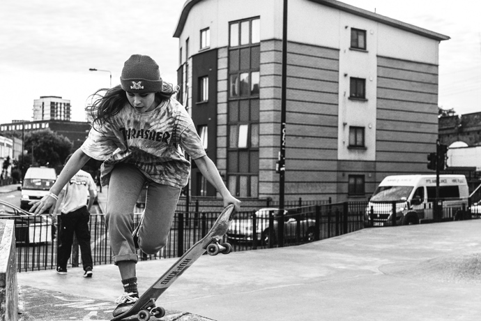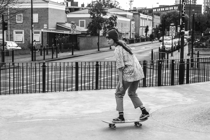 “I had approached a few female skaters and I finally met up with four girls @ Mile End Skatepark, London. The reason why I wanted to shoot female skaters is because while doing research I found out that in the skate scene the focus is mainly about male skaters (huck. I saw there was a big female skate-community too and wanted to visualize this. While shooting these girls at Mile End I realized I wanted to see more and I hope I can portray more female skaters in different countries. ” says XAOUX
