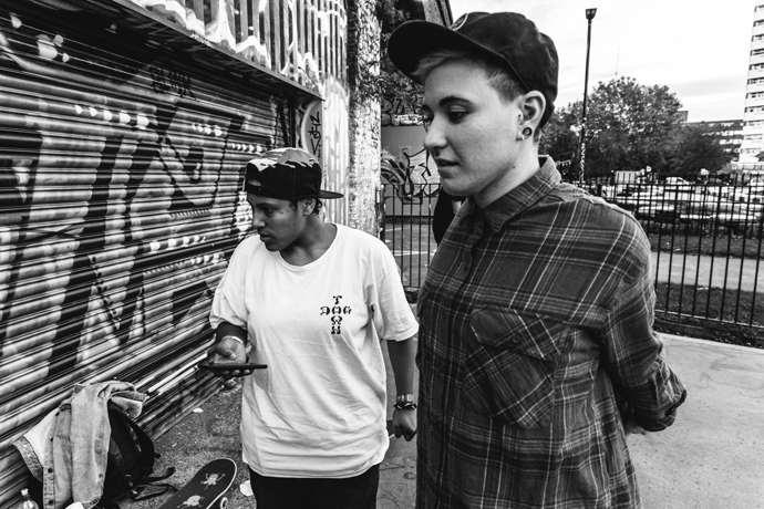 KALTBLUT presents an exclusive photography series: LDN Skate Girls. Photography by XAOUX. “What is it about? If you scroll through your Instagram-feed nowadays you’ll see a lot of (Instagram-) models who wear skate brands such as Supreme, Palace, The Hundreds, HUF etc. Plus, these photographers often portray the same girls and I wanted to shoot random girls who wear skate-brands because they actually skate. Instead of a fashion shoot I decided to turn it into a documentary/report while I tagged along for a day.” says XAOUX