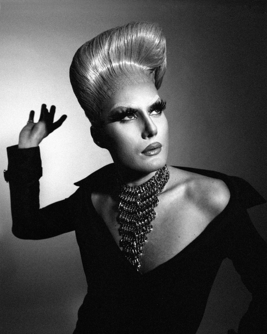 “I wanted to capture what has always amazed me since I’ve known Filip. The great difference between the bitchy and dramatic strength of his drag character and the deep sensitivity that emanates from him. By deconstructing the character artefact by artefact, I tried to find where the cohabitation between these two personalities was. His drag draws his dramatic accents from the exuberance of his poses and attitudes, like an old Hollywood actress, always ready for a scandal, just for the taste of it. While his fragility is all inner. His eyes are like an overflowing sea and his fragile way of holding a cigarette without noticing that it is consumed has moved me.”