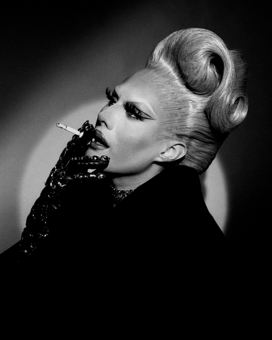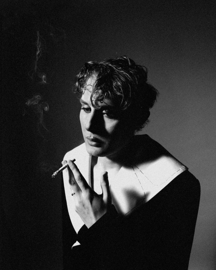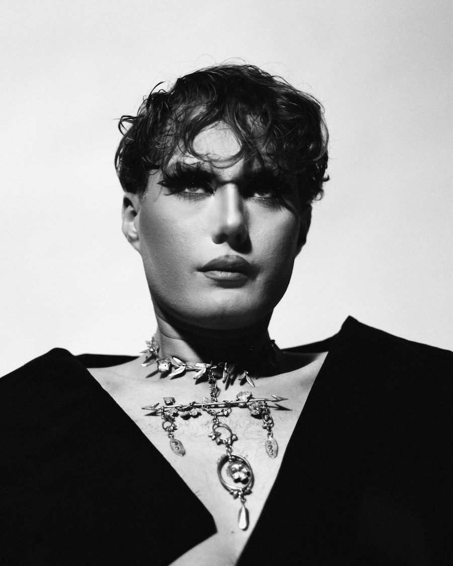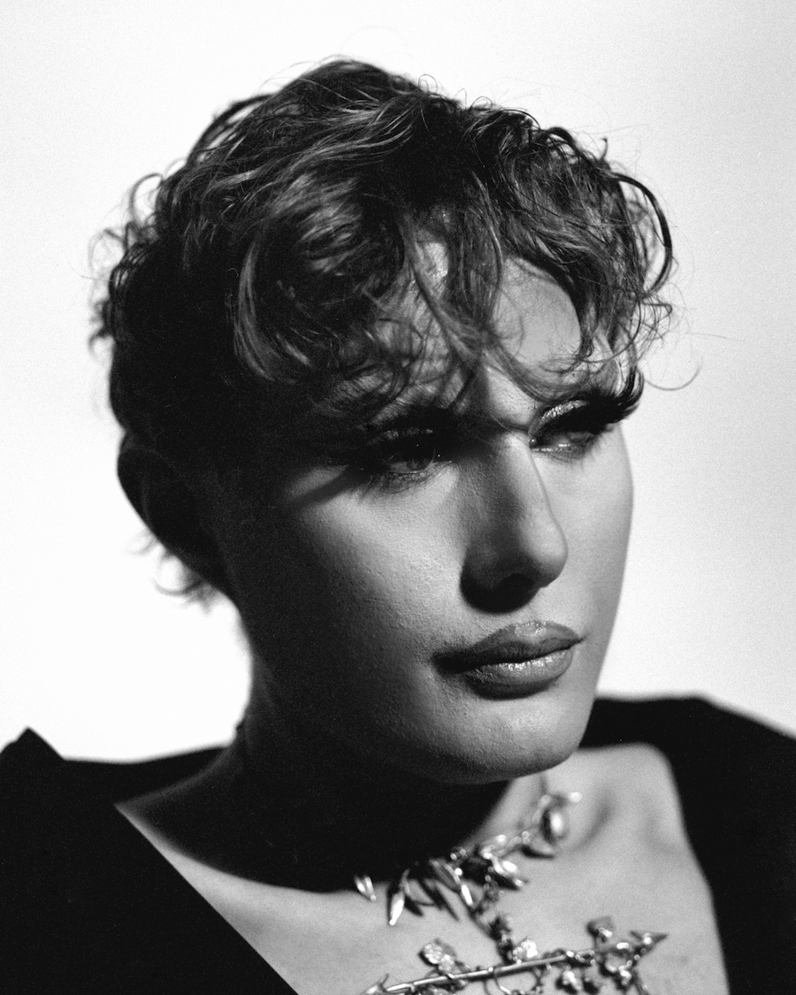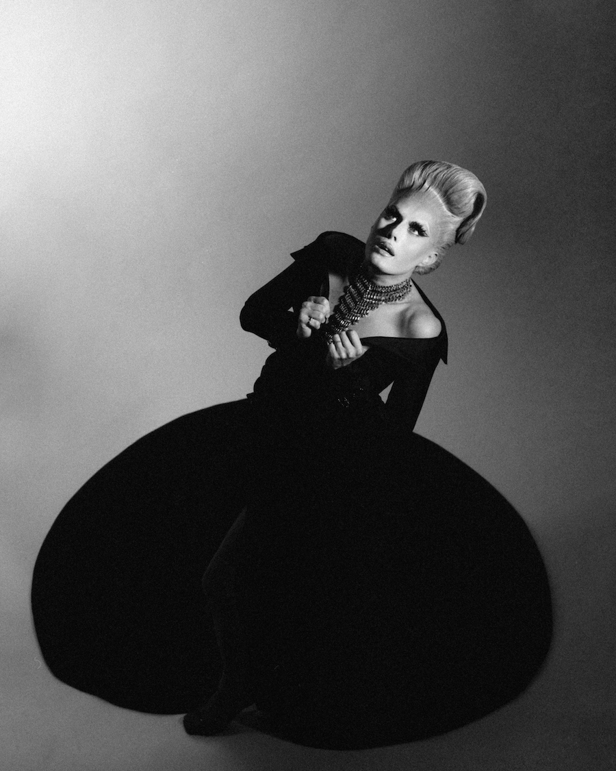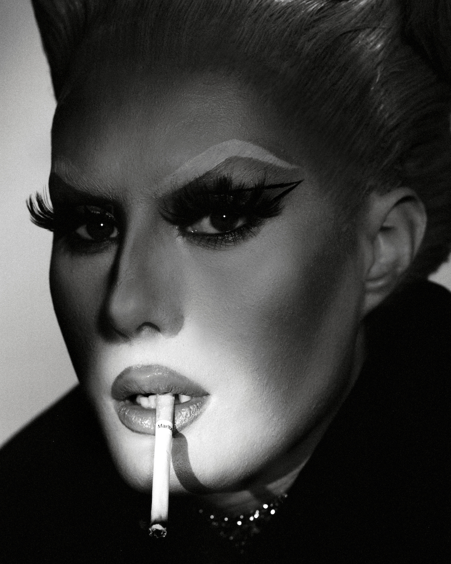 “I wanted to capture what has always amazed me since I’ve known Filip. The great difference between the bitchy and dramatic strength of his drag character and the deep sensitivity that emanates from him. By deconstructing the character artefact by artefact, I tried to find where the cohabitation between these two personalities was. His drag draws his dramatic accents from the exuberance of his poses and attitudes, like an old Hollywood actress, always ready for a scandal, just for the taste of it. While his fragility is all inner. His eyes are like an overflowing sea and his fragile way of holding a cigarette without noticing that it is consumed has moved me.”