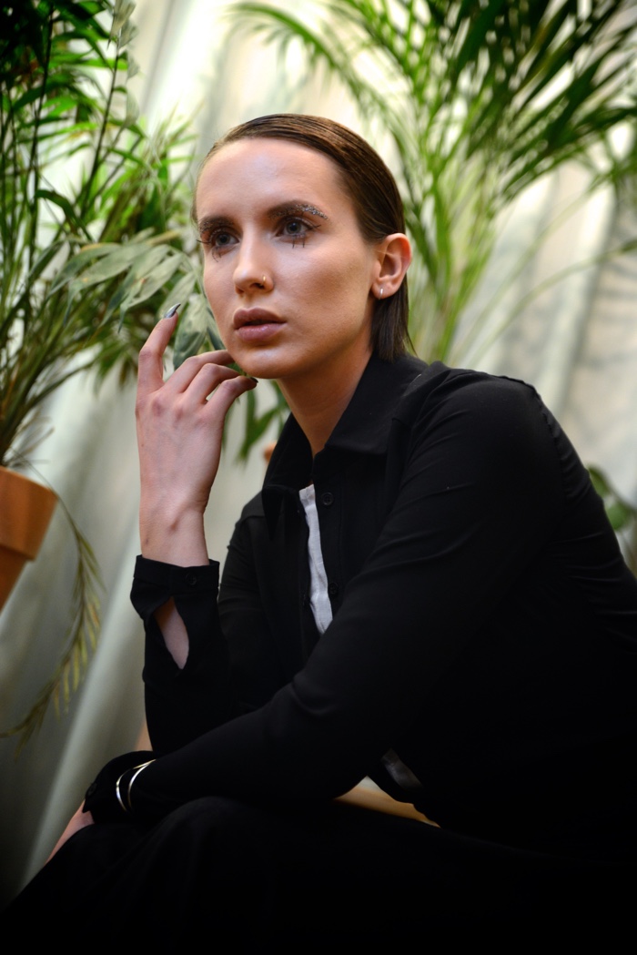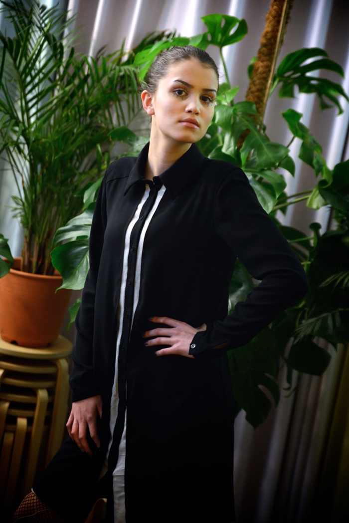 Berlin Fashion Week! Womenswear label LEAF unveiled a classic capsule collection for Fall/Winter 2017-18 at the KALTBLUT event at Blogfabrik. The collection is overing items in black and beige. For the installation LEAF teamed up with UNITED NUDE for the shoes. All photos by Sebastian Pollin. The main goal of LEAF is to make cloth to suit your body the best way and to have the possibility to wear cloth in more than one way – by draping scarfs, close/open hidden buttons for a new look or you can remove a piece of cloth to receive a completely new look. It’s all about a product to give the customer different kinds of extra value, like comfort by wearing, fun by draping & changing the look of the cloth by themselves and the knowledge that the products are all MADE IN BERLIN under fair conditions. Hair and make up by Urnaa Uunii, Ekaterina Igonina and Mby Randrianantenaina, Liesa Zilius. Special thanks to McFit Models and Viva Models for the girls.