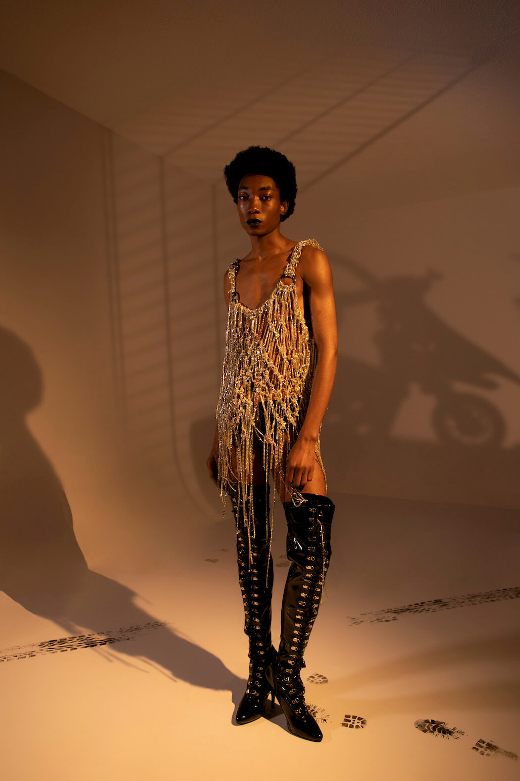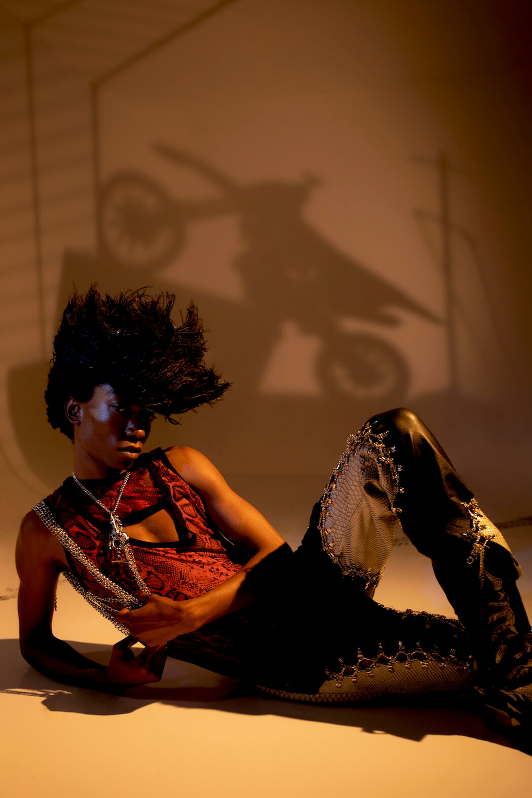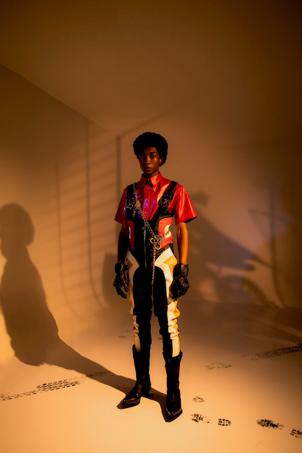 Entitled Leather Boys Pt II, the AW21 collection editorial is a collaboration showcasing Mateo’s own work and everyone he worked with, including Jewellery by Luke V Smith, Bags by Manon Planche, Hats by Benjamin Paul and New Rock Shoes.