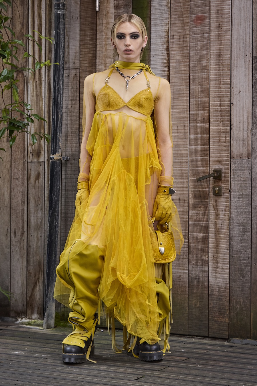The damp environment of San José del Pacífico also inspired a collaboration with Dr. Martens, resulting in a reimagined Jadon boot featuring cargo pockets, offering waterproof and breathable qualities.