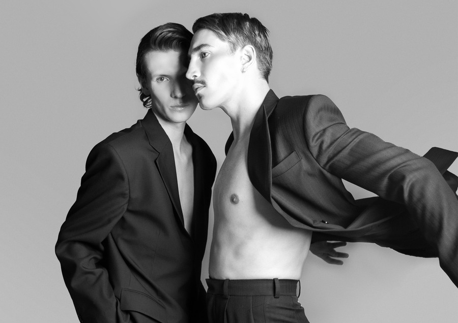 Introducing the Kyle Ho Spring/Summer 2024 collection. Photography by Omer Gaash. The models are Jonathon Luke Baker and Matthew Howard. Hair and makeup by Dongha Kim. Jewellery by Wink Atelier. A KALTBLUT exclusive.