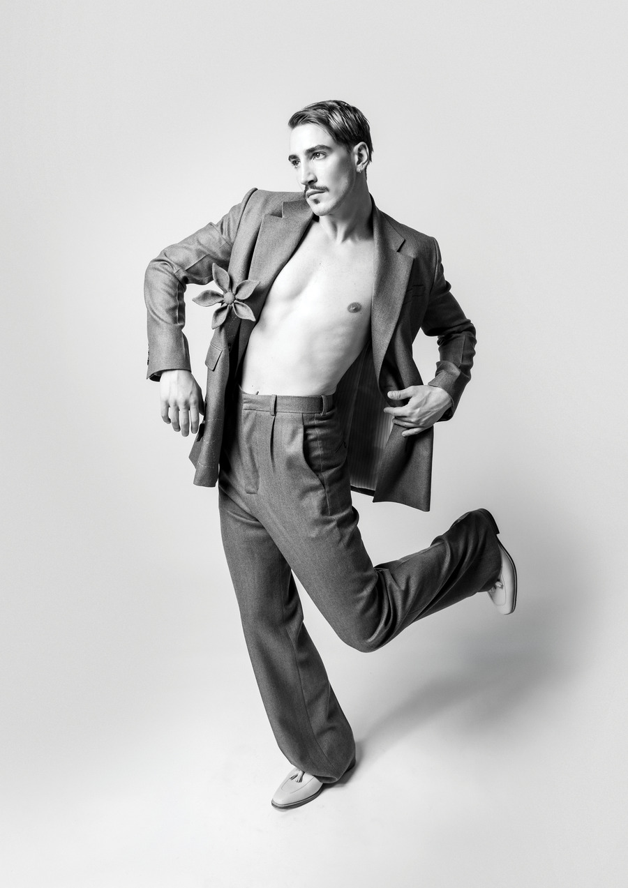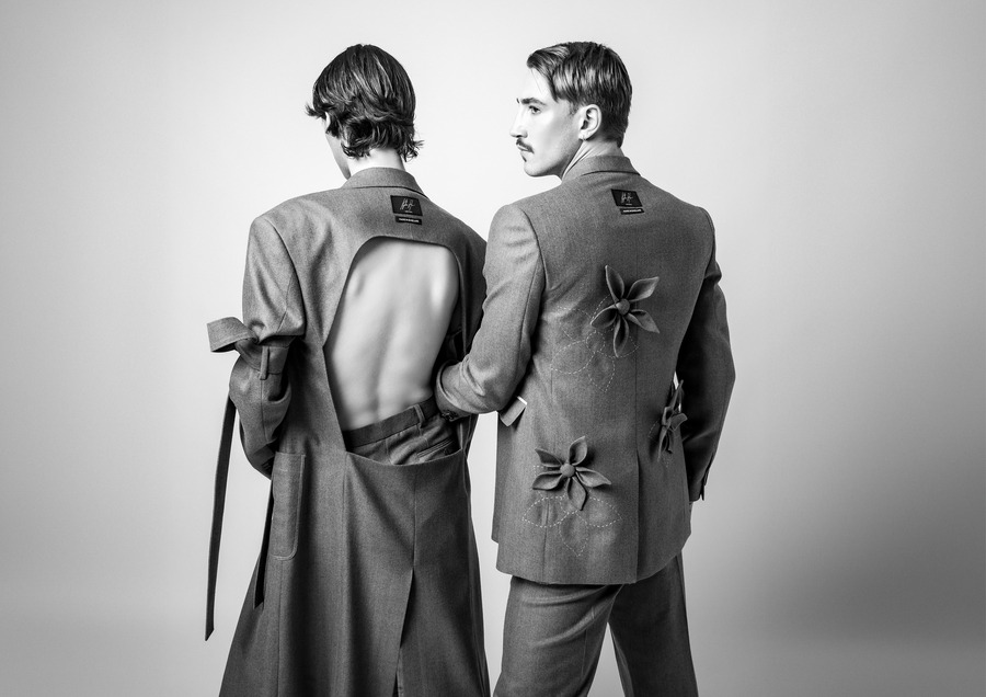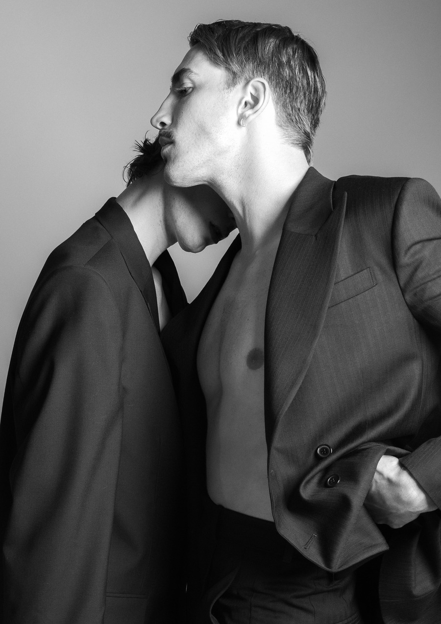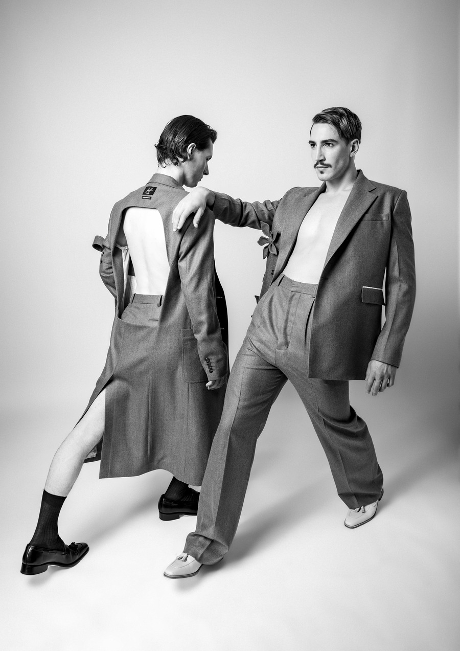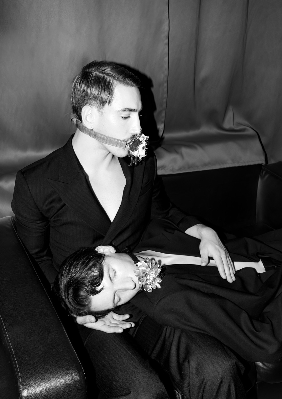 Introducing the Kyle Ho Spring/Summer 2024 collection. Photography by Omer Gaash. The models are Jonathon Luke Baker and Matthew Howard. Hair and makeup by Dongha Kim. Jewellery by Wink Atelier. A KALTBLUT exclusive.
