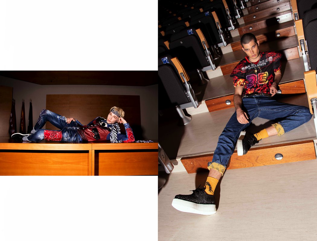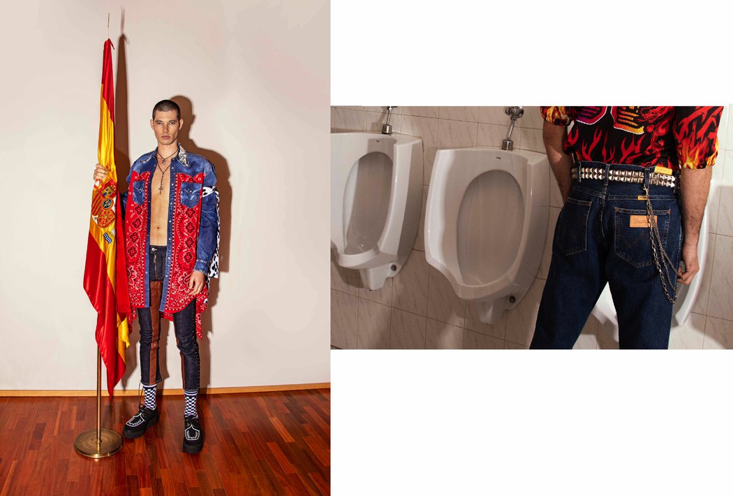 On the left: Ben- Total Look “DSuared2” and shoes “New Rock”. // On the right: Ben- T-shirt “Ruben Galarreta” and jeans “Wrangler blue Ben- Jacket, shirt and jeans “Levi’s by Justin Timberlake”, cap “Levi’s made & Crafted”, sunglasses vintage and sandals “Birkenstock”. Cesar- Overalls and jacket “Levi’s made & Crafted”, belt “Levi’s” and sandals “Birkenstock”. On the left: Eugene- T-shirt “Ruben Galarreta”, socks “Happy Socks”, jeans “Wrangler” and shoes “New Rock”. // On the right: Ben- T-shirt “Ruben Galarreta”, socks and jeans “Wrangler blue” and shoes “New Rock”. On the left: Cesar- Jacket “Desigual”, velt “Nouman” and jeans “Just Cavalli”. // On the right: Eugene- Coat and jersey “Just Cavalli” trousers “Champion” and boots “Tommy Hilfiger”. On the left: Cesar- Jersey, scarf and trousers “Love Moschino” and shoes “New Rock”. Eugen- Sweatshirt and jeans “Love Moschino” and shoes “New Rock”. // On the right: Ben- Total Look “Pepe Jeans” and shoes “Tommy Jeans”. Eugene- Total look “Pepe Jeans”. Cesar Total look “Pepe Jeans”. On the left: Ben- T-shirt “Kaotico Bcn”, trousers “Antony Morato”, socks “Happy Socks” and shoes “Camper”. Eugene- T-shirt and trousers “Kaotico Bcn”, socks “Happy Socks” and shoes “Camper”. Cesar- T-shirt “Kaotico Bcn”. // On the right: Ben- Shirt and jeans “Berskha” belt “Wrangler” hat vintage and shoes “Birkenstock”. – On the left: Ben- T-shirt “Ruben Galarreta”, socks and jeans “Wrangler blue” and shoes “New Rock”. Eugene- T-shirt “Ruben Galarreta”, socks “Happy Socks”, jeans “Wrangler” and shoes “New Rock”. // On the right: Eugene- Shirt, cap, belt and trouser “Tommy Hilfiger”, bomber, scarf and bum bag “Tommy Jeans”, socks “Happy Socks”, glases vintage, tie “H&M by Disney” and shoes “Tommy x Lewis Hamilton”. Ben- T-shirt with hood, trousers and sweatshirt “Tommy jeans”, bum bag “Eastpak by Andy Warhol”, socks “Happy Socks”, sunglases vintage, hat “Pepe Jeans” and shoes “New Rock”. On the left: Cesar – Total look “Pepe Jeans”// On the right: C esar- T-shirt and sweatshirt “Tommy x Lewis Hamilton”, jeans and bum bag “Tommy Jeans”, socks “Wrangler blue”, sunglases vintage and shoes “New Rock”.