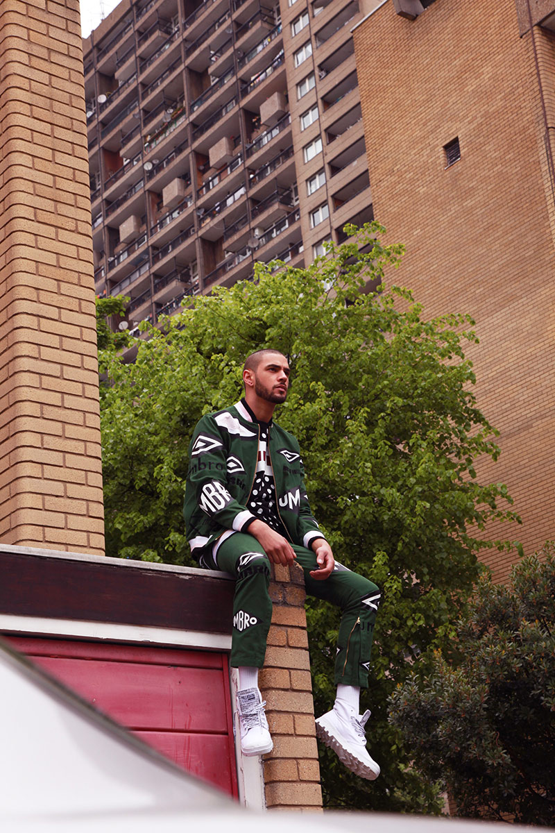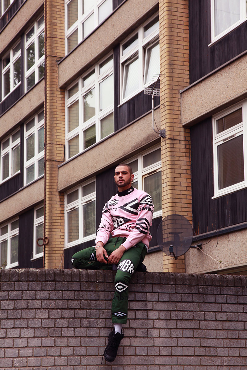 Sadiq wears UMBRO x HOUSE OF HOLLAND total look.