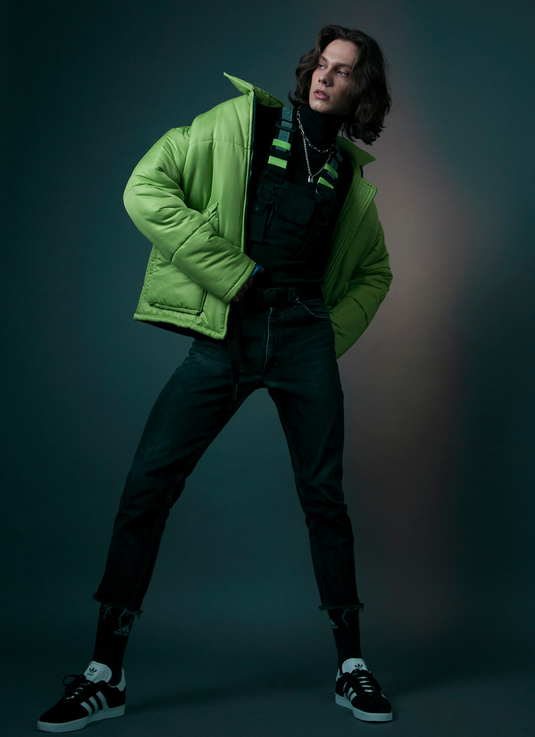 A KALTBLUT exclusive male model feature. Photography by Henrietta Halasi. Model is Levente Varga signed at Wam Models. Styling by Csenge Kazsmer. Make up by Jazmin Krutek. Fashion by Kata Szegedi, Daniel Rozsahegyi, Attila Lajos, Nanushka, L’evis, Footshop Budapest, Nike, Adidas.