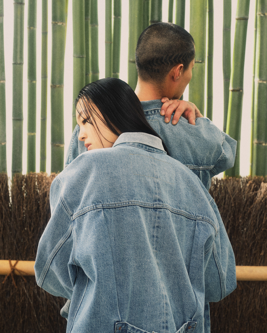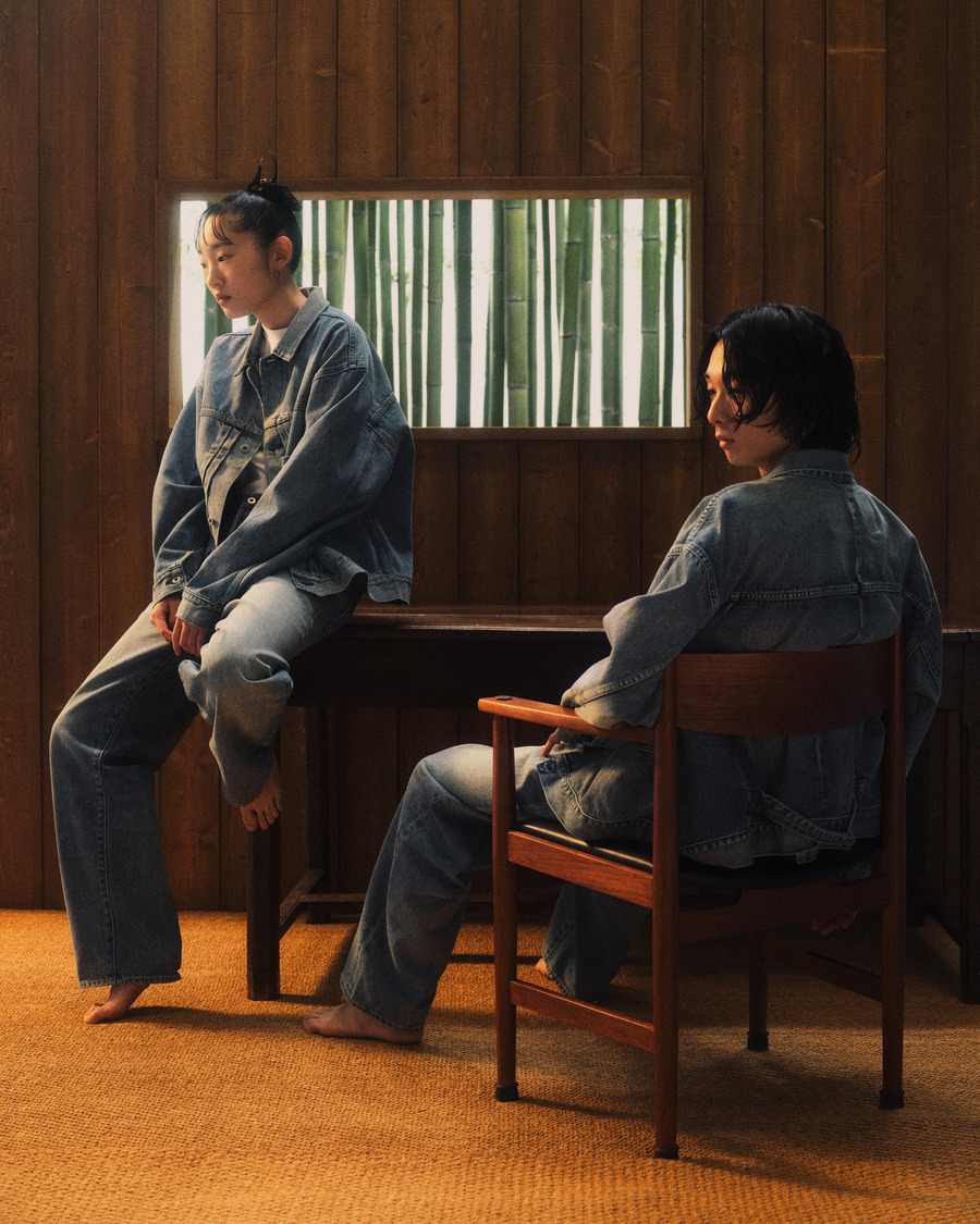 Transporting viewers into a world that juxtaposes traditional Japanese landscapes with urban backdrops, the Levi’s® x BEAMS Super Wide V2 campaign captures the essence of Japan’s natural beauty alongside its modern allure. The campaign, featuring a diverse ensemble of nine models, expertly weaves together imagery of bamboo forests and cobblestone paths with urban studio settings, creating a captivating tapestry that feels simultaneously familiar and foreign.