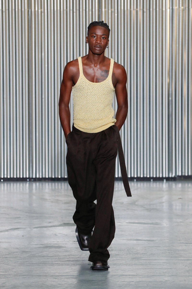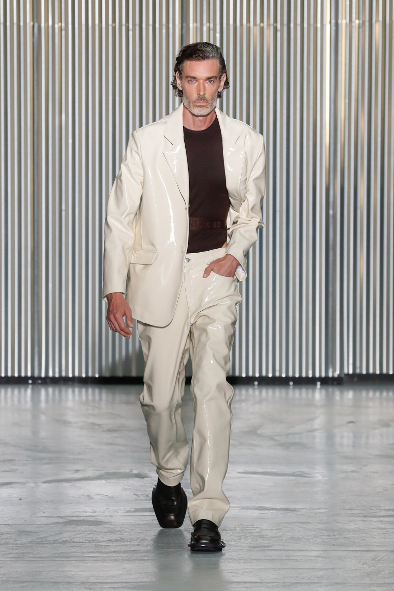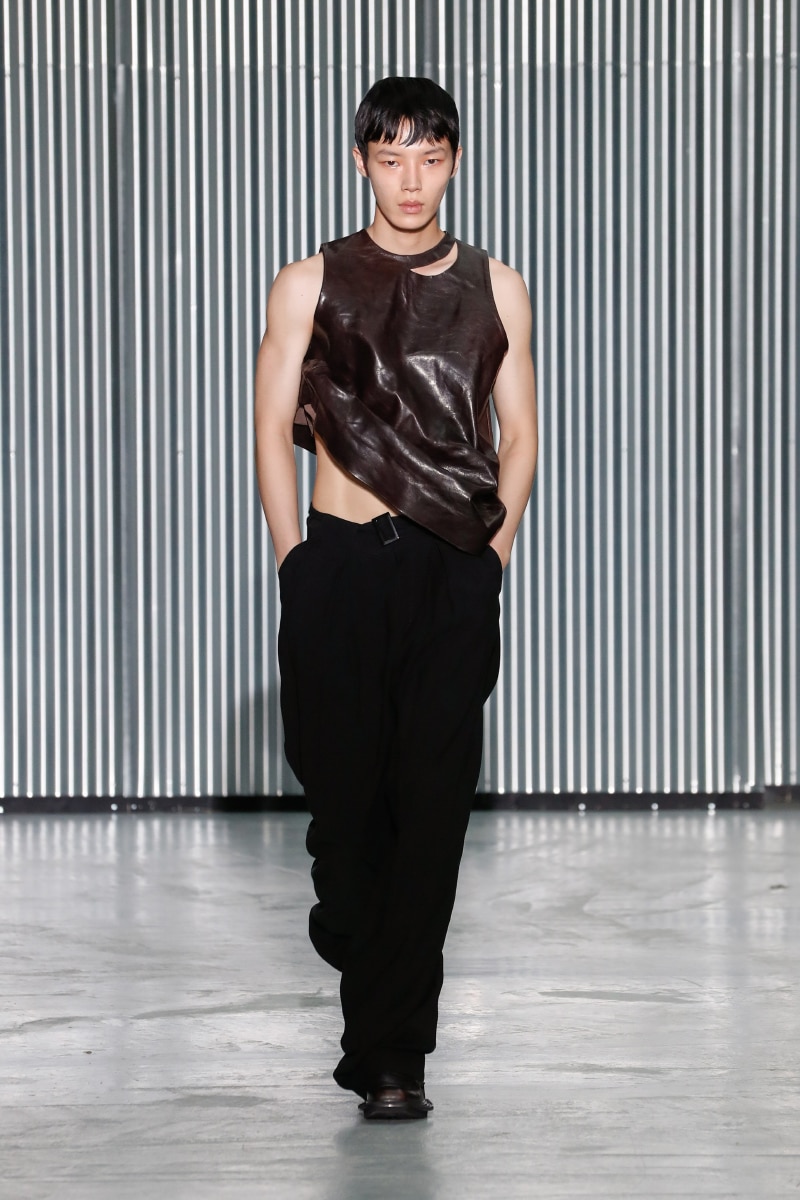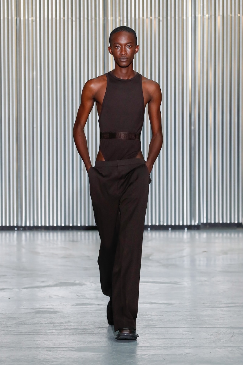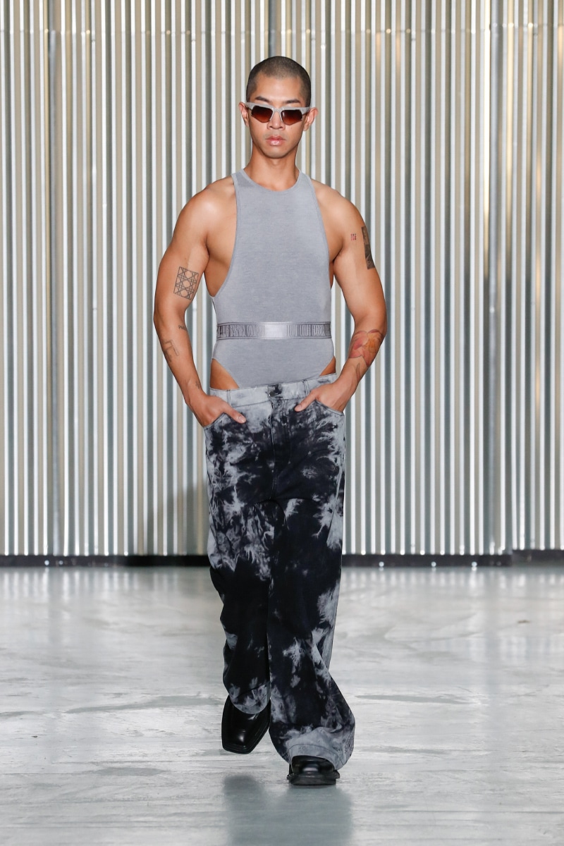 Through his SS24 collection, LGN Louis Gabriel Nouchi challenges the man-made stringent societal norms with the overpowering force of repressed emotions. The collection showcases the 60s Mod-inspired jackets with sharp shoulders, waist-strangled bodysuits, and singlets in sustainable fabrics of micro modal and lyocell, blending comfort with style, as part of the designer’s universe.