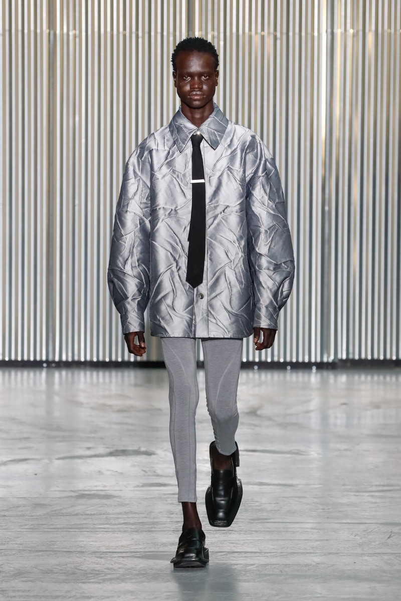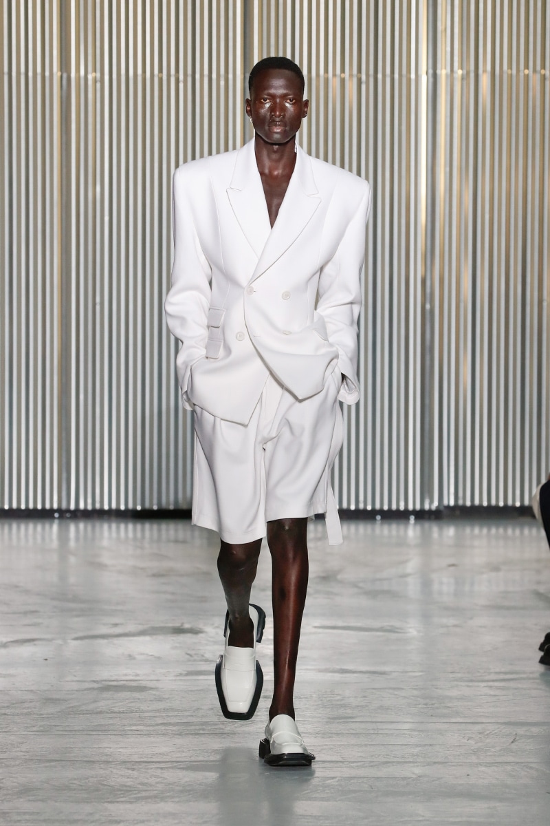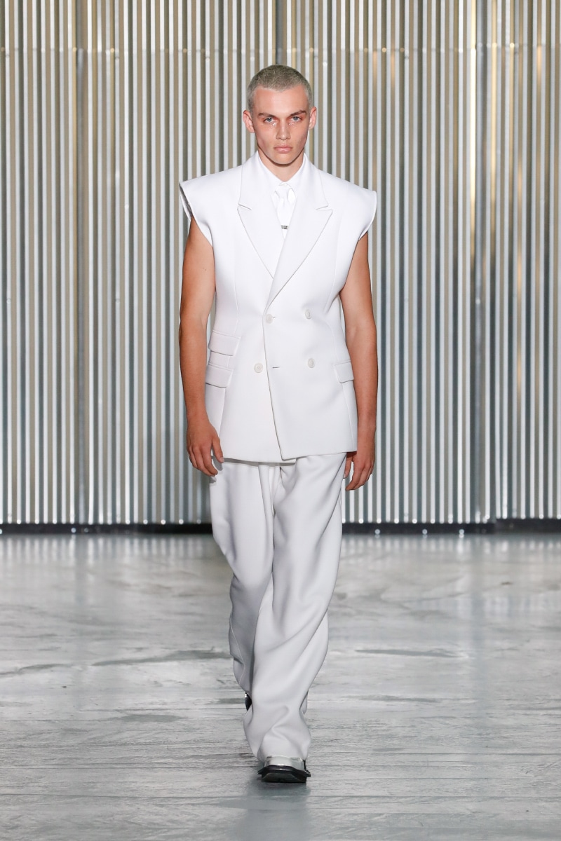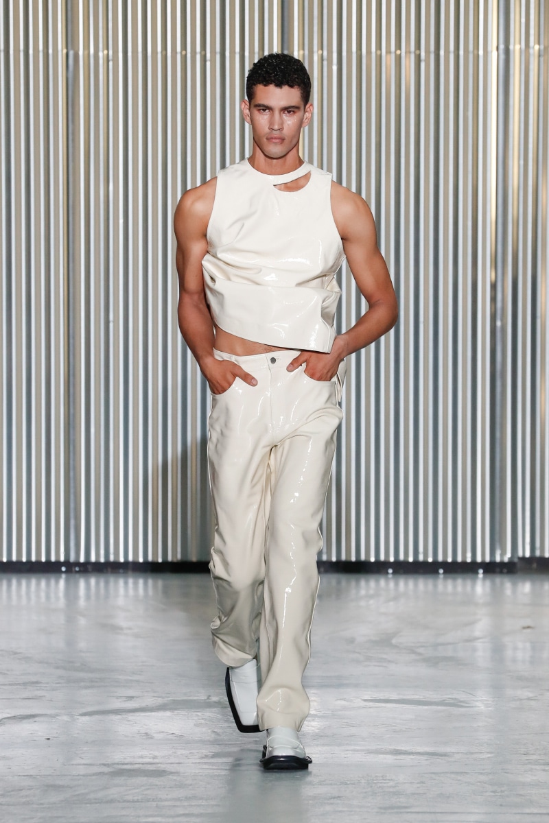 Through his SS24 collection, LGN Louis Gabriel Nouchi challenges the man-made stringent societal norms with the overpowering force of repressed emotions. The collection showcases the 60s Mod-inspired jackets with sharp shoulders, waist-strangled bodysuits, and singlets in sustainable fabrics of micro modal and lyocell, blending comfort with style, as part of the designer’s universe.