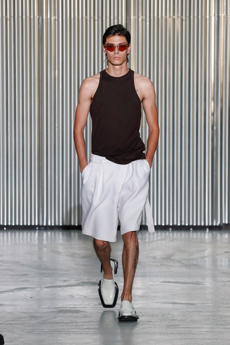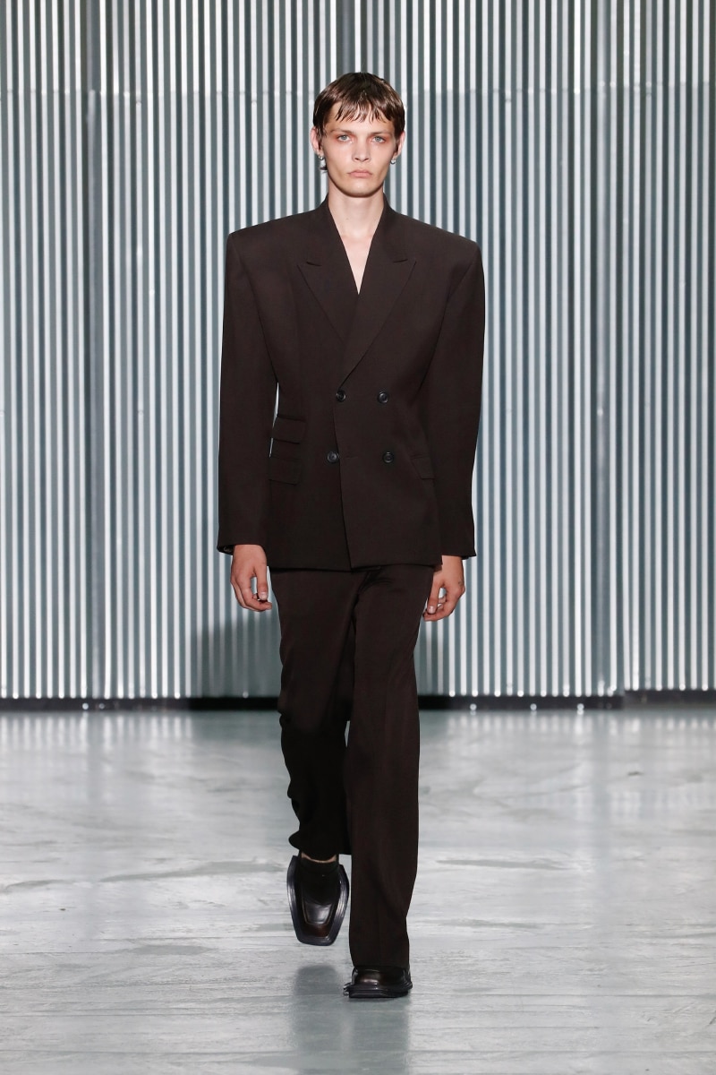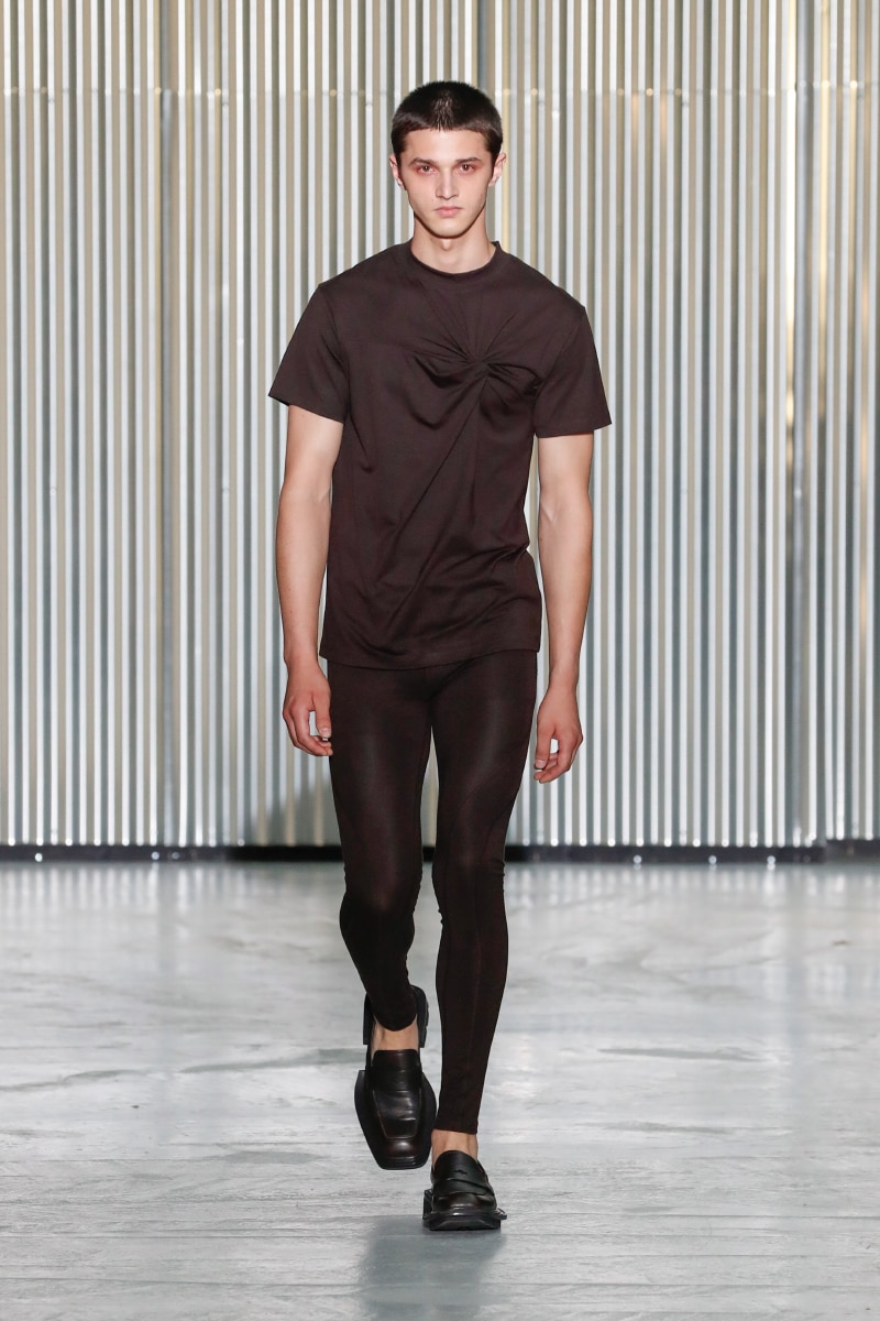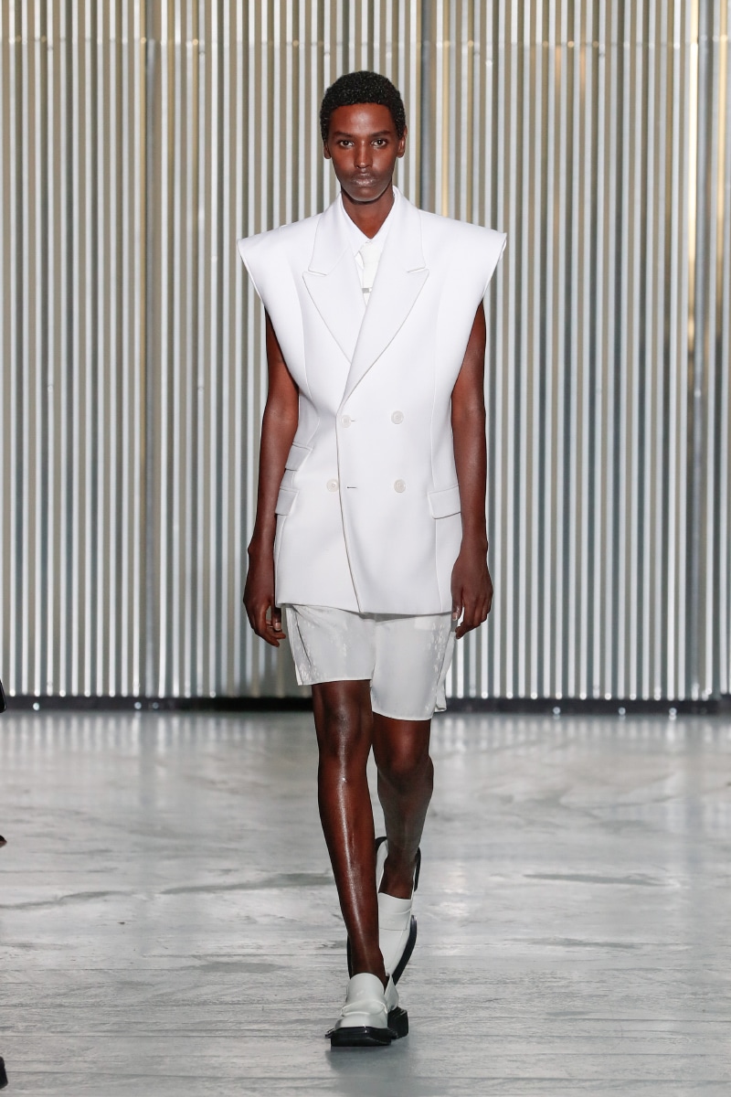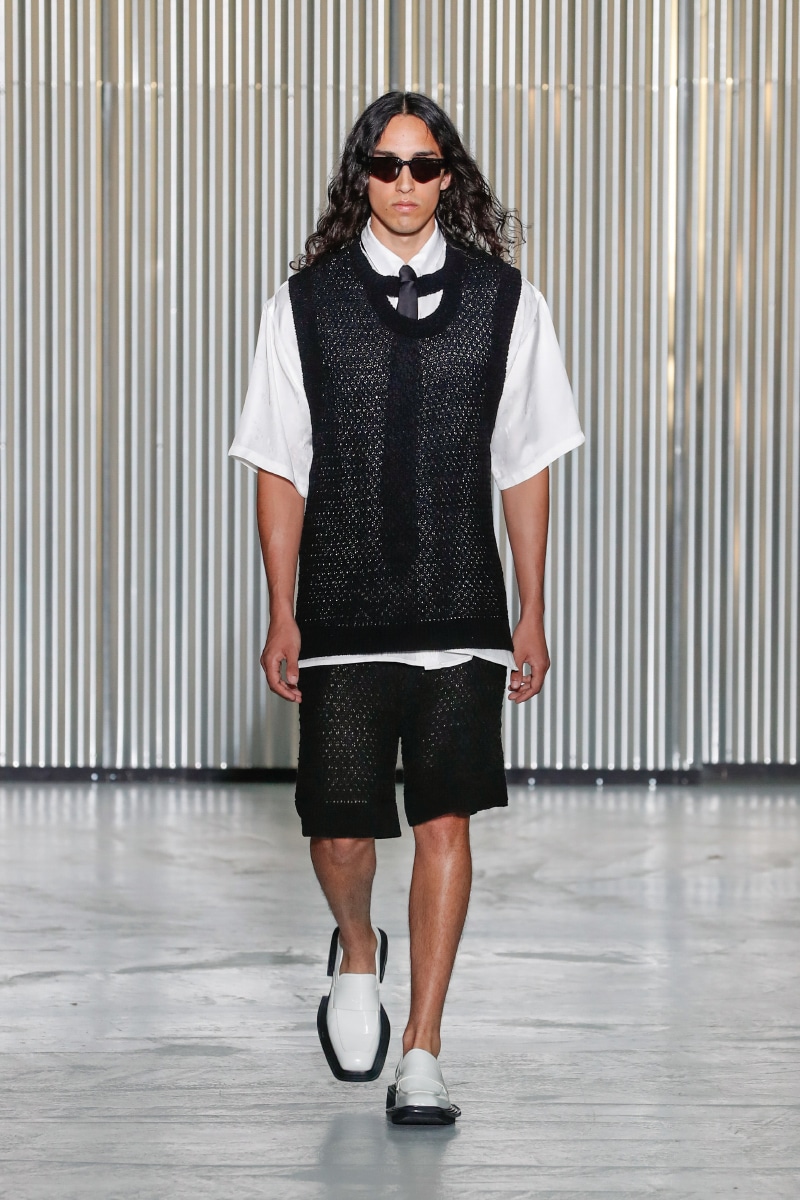 Through his SS24 collection, LGN Louis Gabriel Nouchi challenges the man-made stringent societal norms with the overpowering force of repressed emotions. The collection showcases the 60s Mod-inspired jackets with sharp shoulders, waist-strangled bodysuits, and singlets in sustainable fabrics of micro modal and lyocell, blending comfort with style, as part of the designer’s universe.
