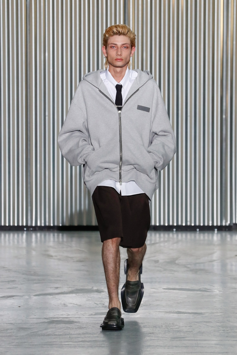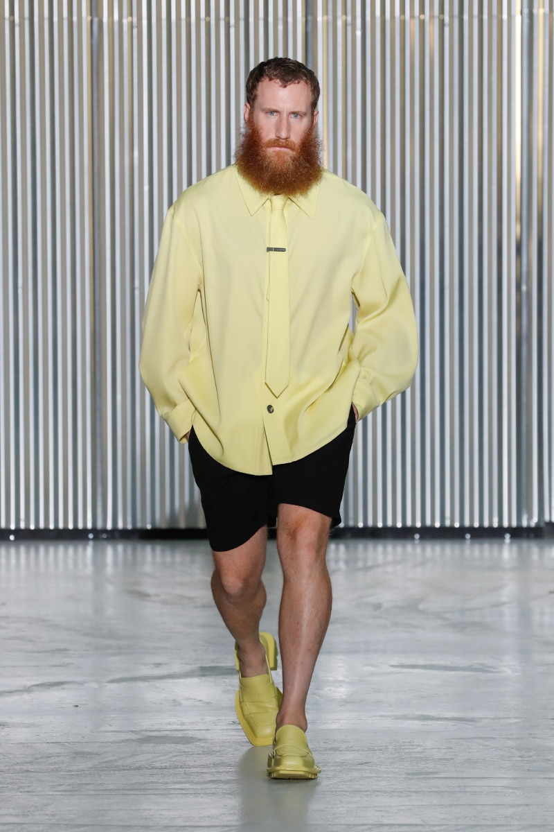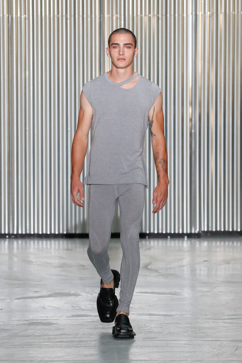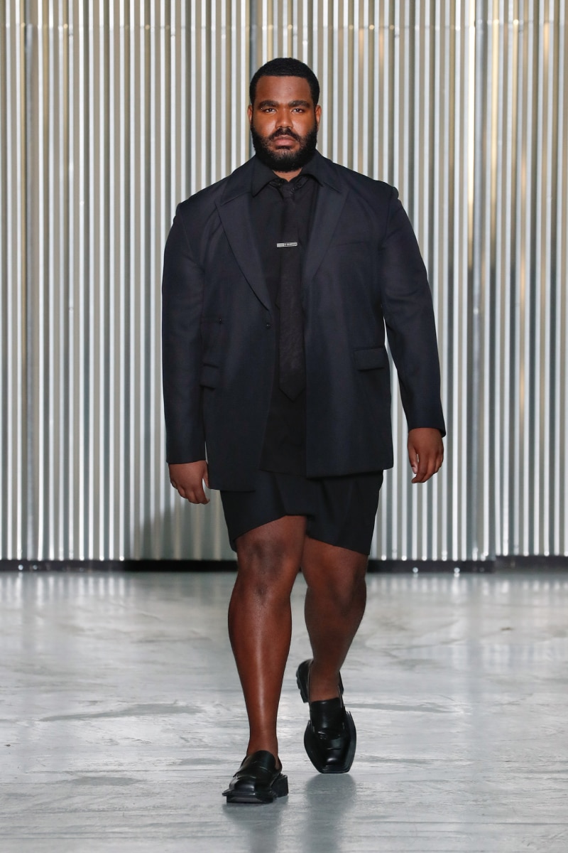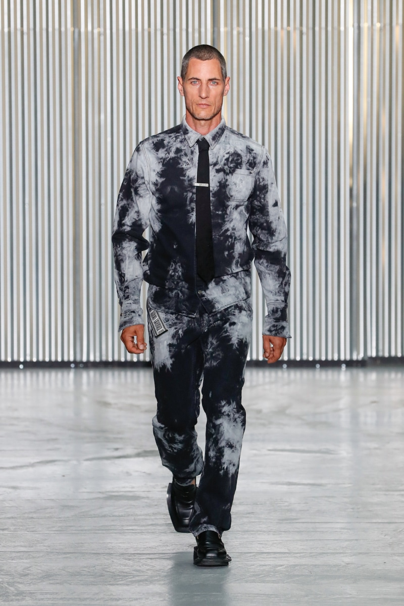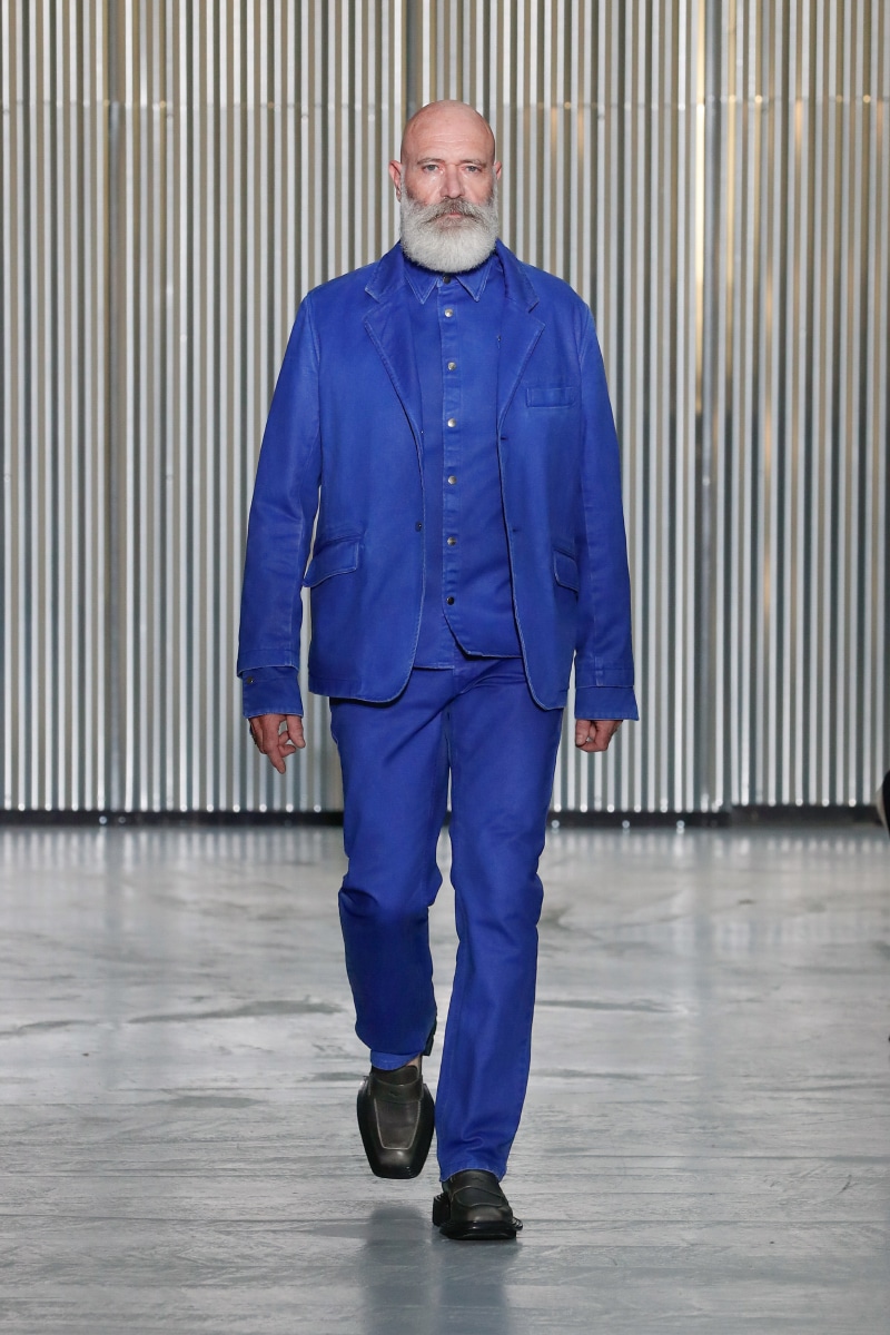 Amid all this tragedy, sensuality and representation of inclusivity flourish on the catwalk, with openings on tops, shirts, and jumpers, revealing the underwear. This is not a gender issue but an act of strength that LGN Louis Gabriel Nouchi wants to promote, as well as the inclusivity and diversity of male bodies; floral accessories represent mourning and the beauty of ephemeral and the renewal of life.
