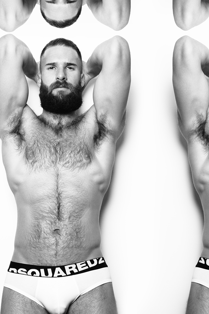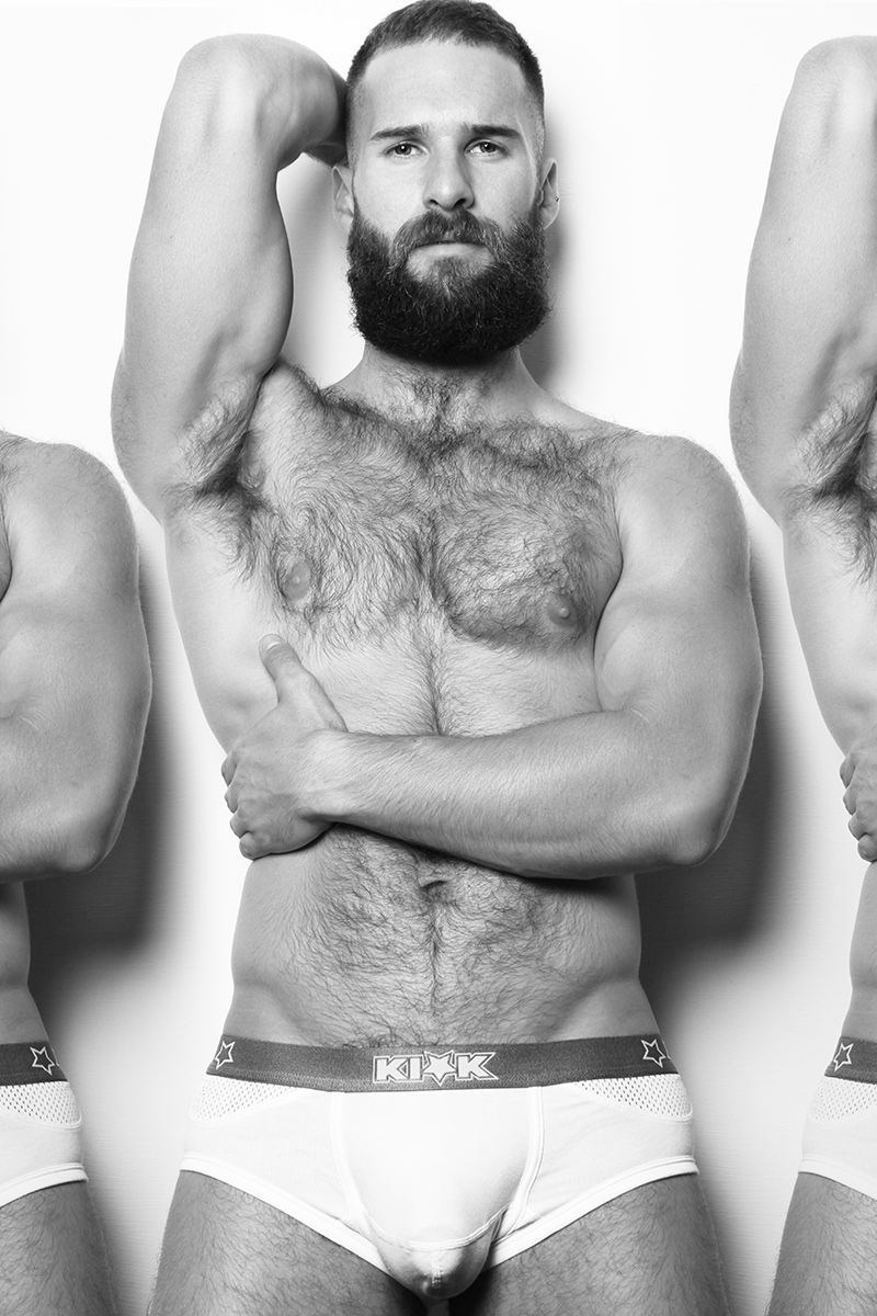 A KALTBLUT exclusive underwear editorial. Photographer Karl Slater captured Matt Lister signed at Established Models for us. Styling by Kennedy Sliver using fashion by Garofali, Versace, Dsquared and Kick Sagat