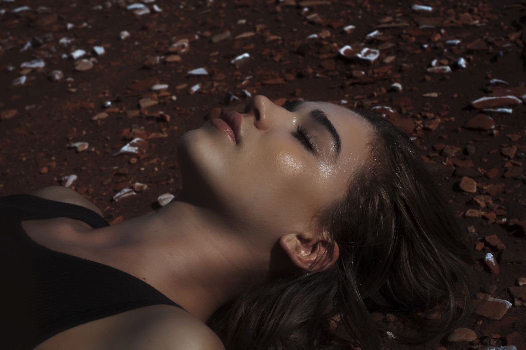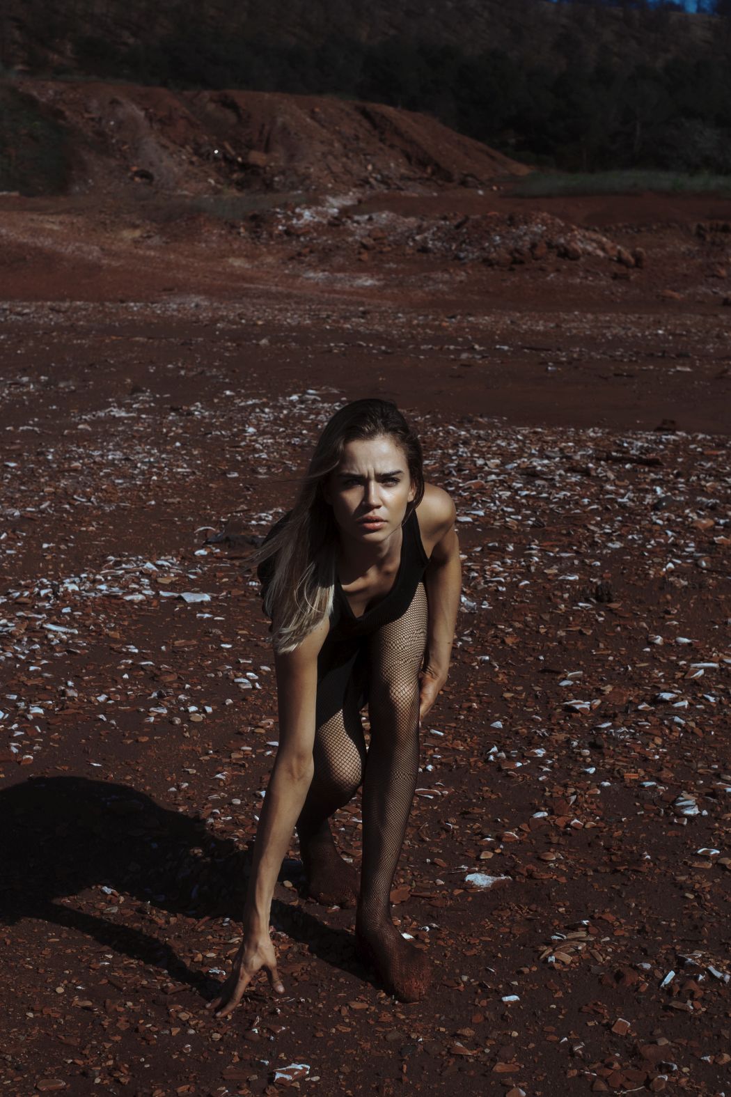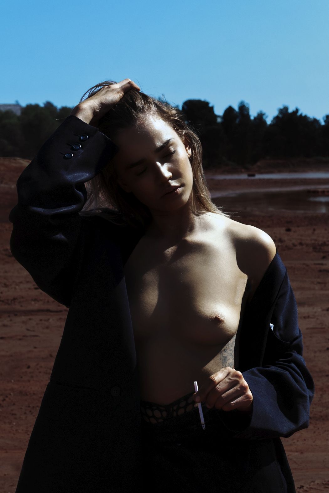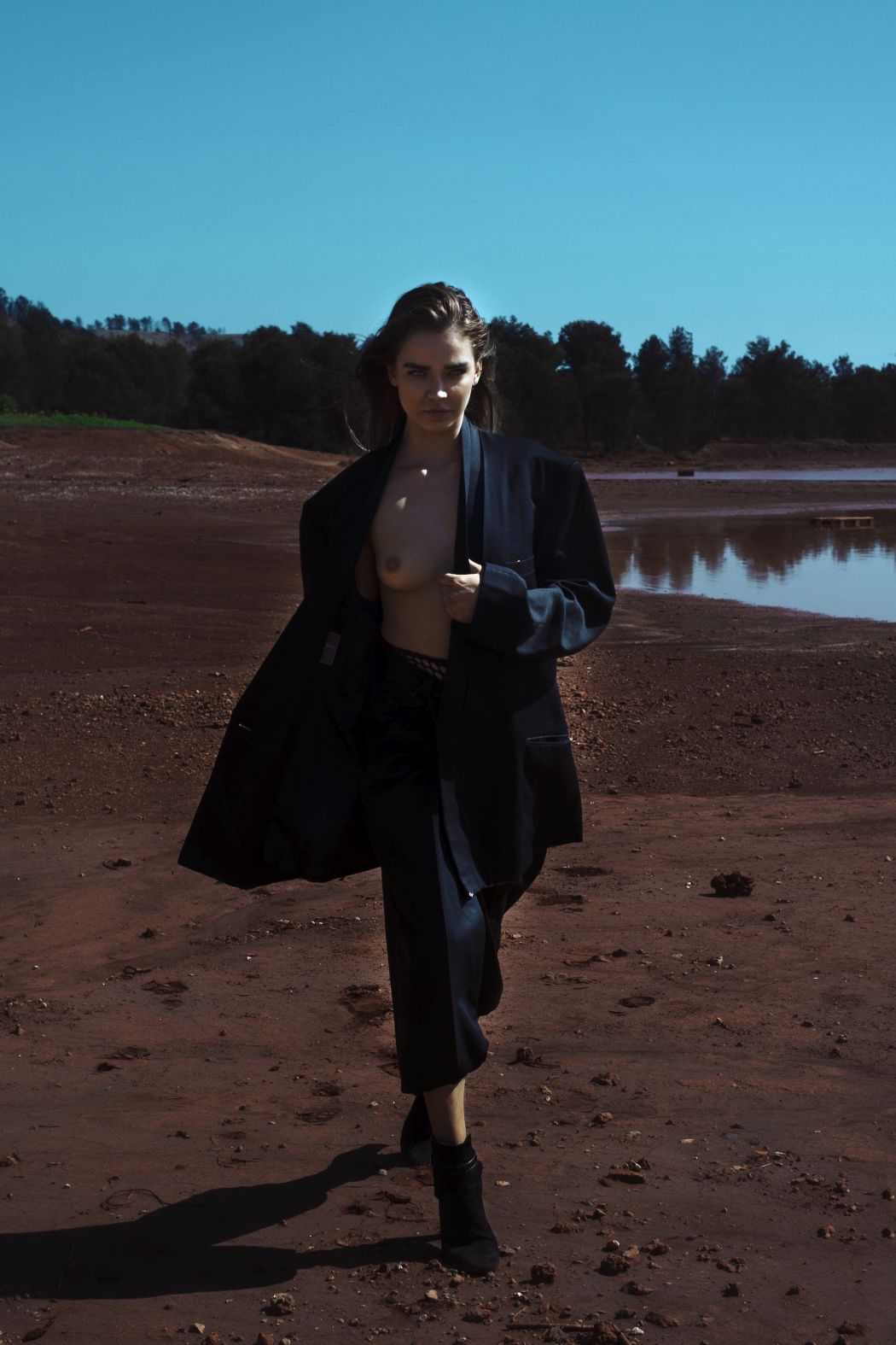 A KALTBLUT exclusive fashion editorial. A story shot in the red land of the South of France. Starring model Camille Germain signed to Crystal Models. She were shot in a natural way with no beauty team, the styling and photography was made by artist Laurie-Lou. With the courtesy of Issey Miyake, Givenchy, Position Lingerie, Citizen of Humanity Versace & Christian Lacroix.
