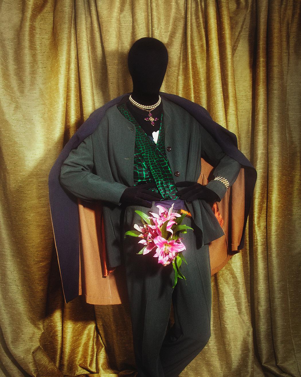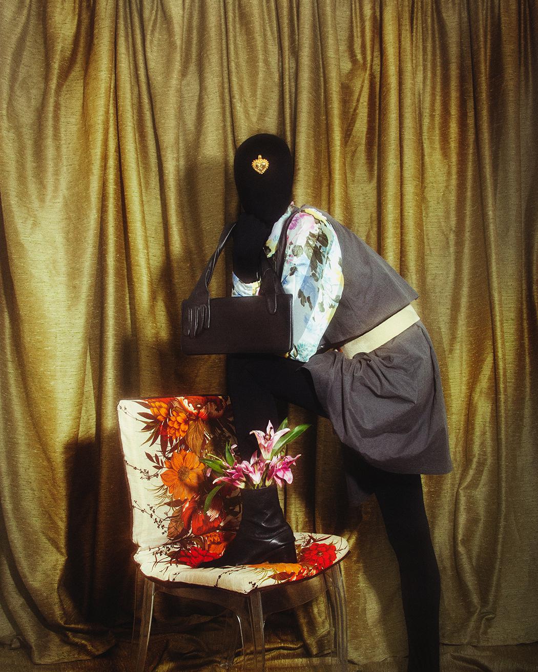 Photographer Kasper Servé teamed up with stylist Sebastian Zal Filsoof and model Mathias Mons to create this stunning editorial. With this photo shoot the team wanted to explore the possibilities of expressing a story and personality without seeing the model’s face. With an anonymous model behind a mask, it gives the photographer and stylist a blank canvas to work with. Each photo has its own story and with styling, poses, and perspective, we were able to play with a fluid gender to act it out.