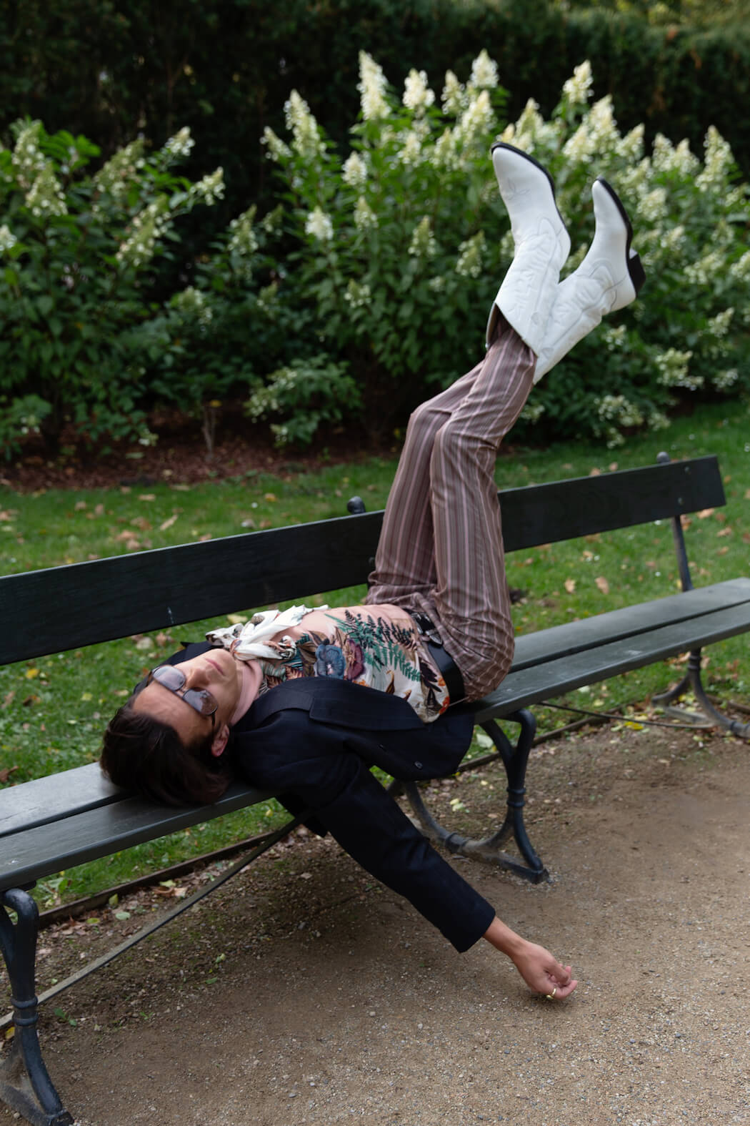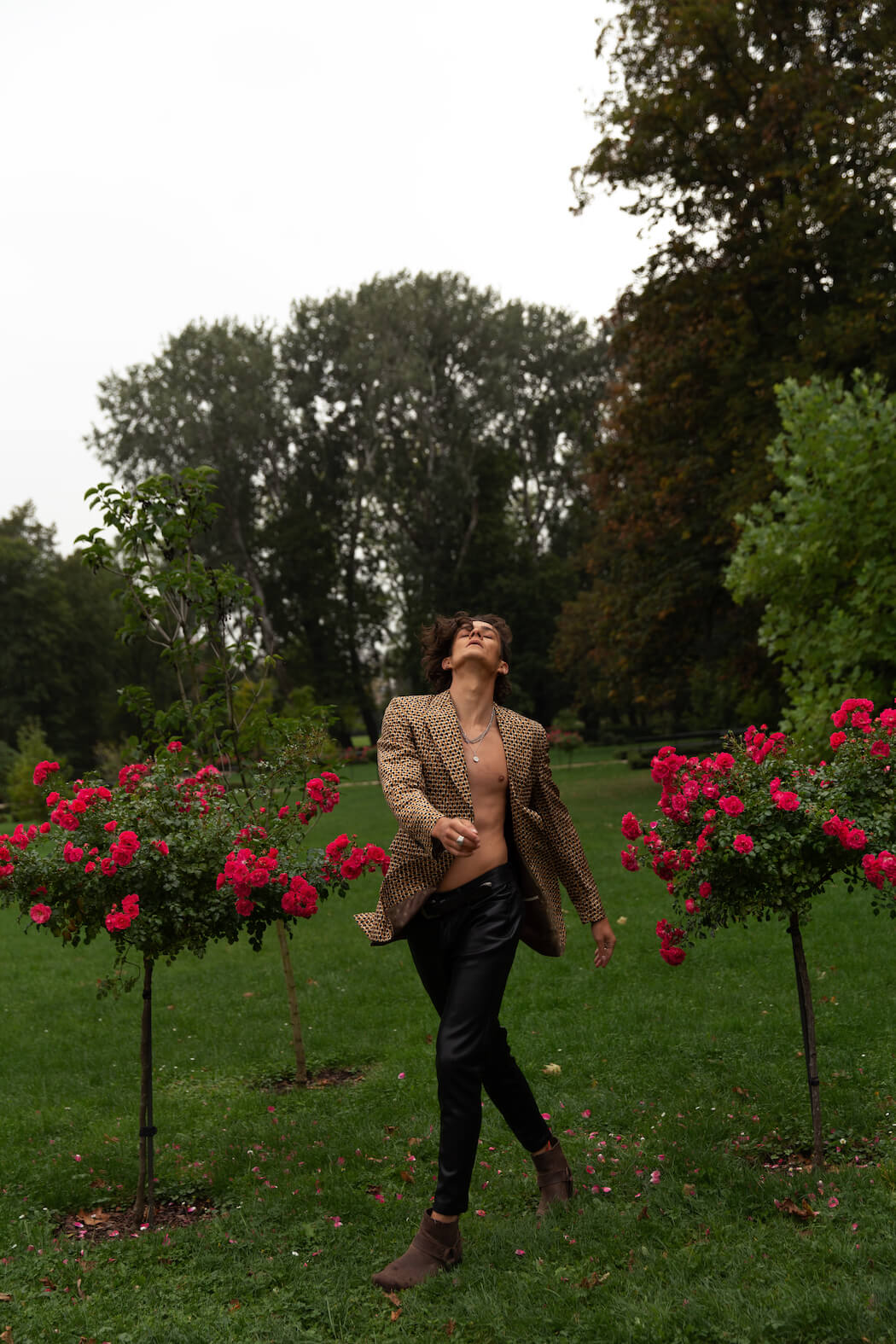jacket: Tomasz Ossoliński, jewelry: Juzam, trousers: CELINE, shoes: Johnny Bulls