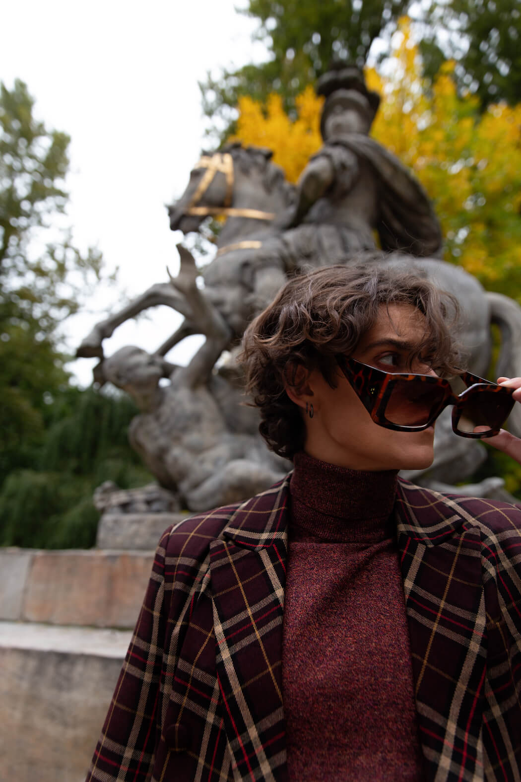 Turtleneck: Bola, jacket: Kas Kryst, trousers: Papillon, shoes: Rita Krzysiek, sunglasses: The Blog Shop
