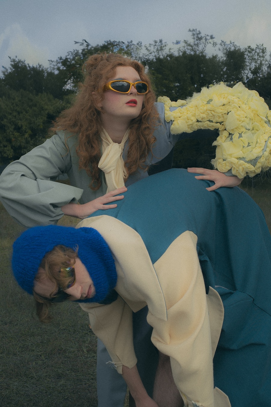 Our approach to styling pieces by Katsiaryna Mikhailava was driven by a desire to look at the garments from an unusual angle. We consciously avoided referencing runway styling or the way the clothes were originally presented to the public. Instead, we followed the logic of fabric, cut, and construction, allowing silhouettes and textures to dictate the mood. This process naturally led us toward something surreal in a state of a fantasy shaped by materials rather than trends.