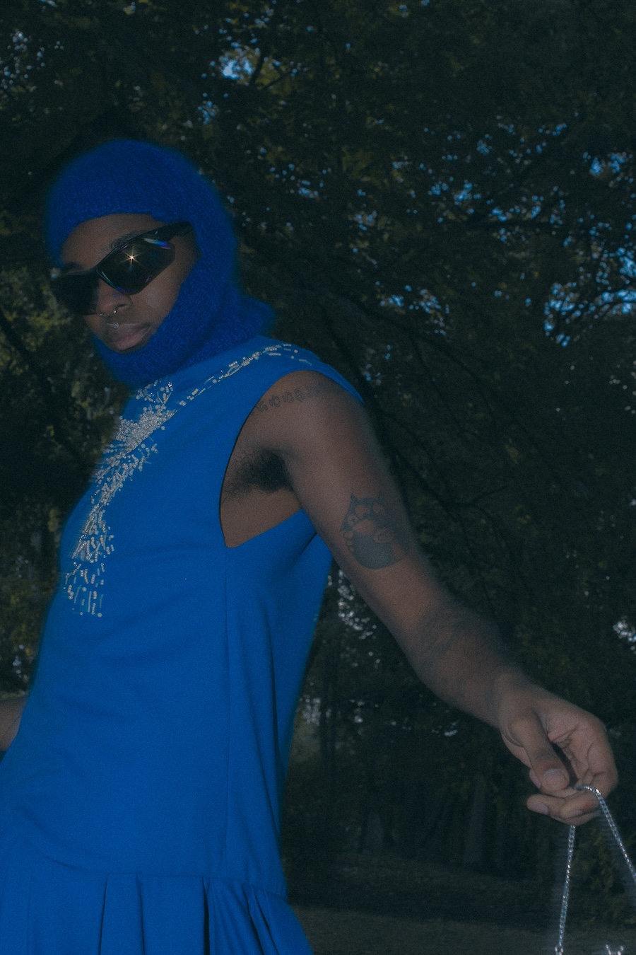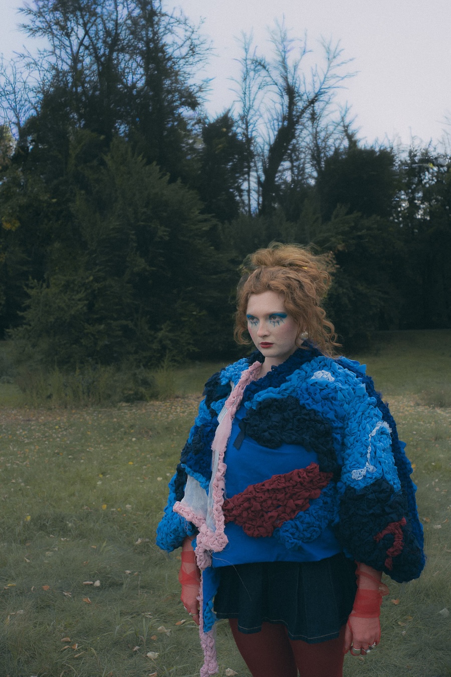 A special element of the shoot is the balaclava, created by KnitToChange, our close friends and collaborators. Their practice centres on sustainable fashion and one-of-a-kind pieces that are intentionally unusual, even strange. The balaclava fits seamlessly into the doll-like aesthetic, reflecting a modern world where individuality, sustainability, and handcrafted uniqueness coexist with fantasy and desire.”