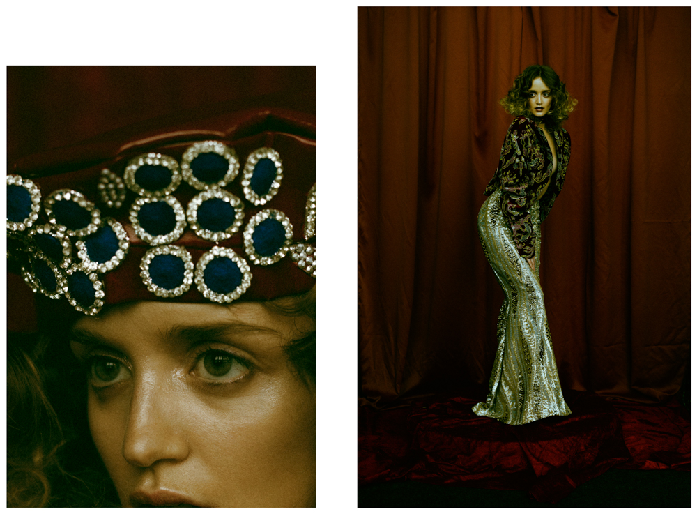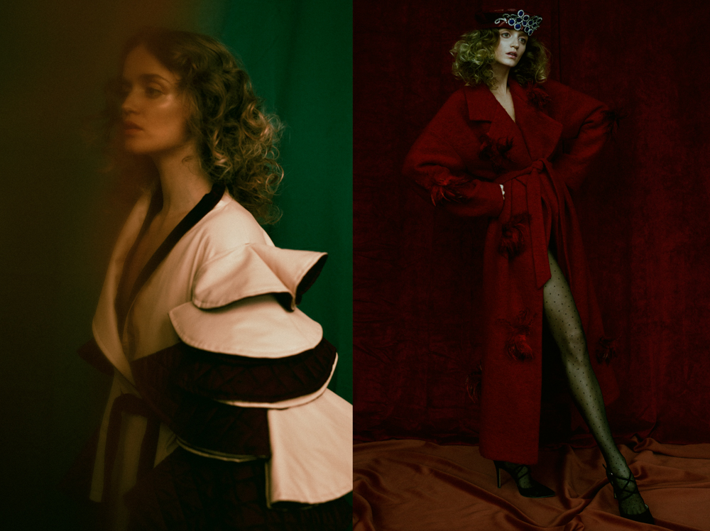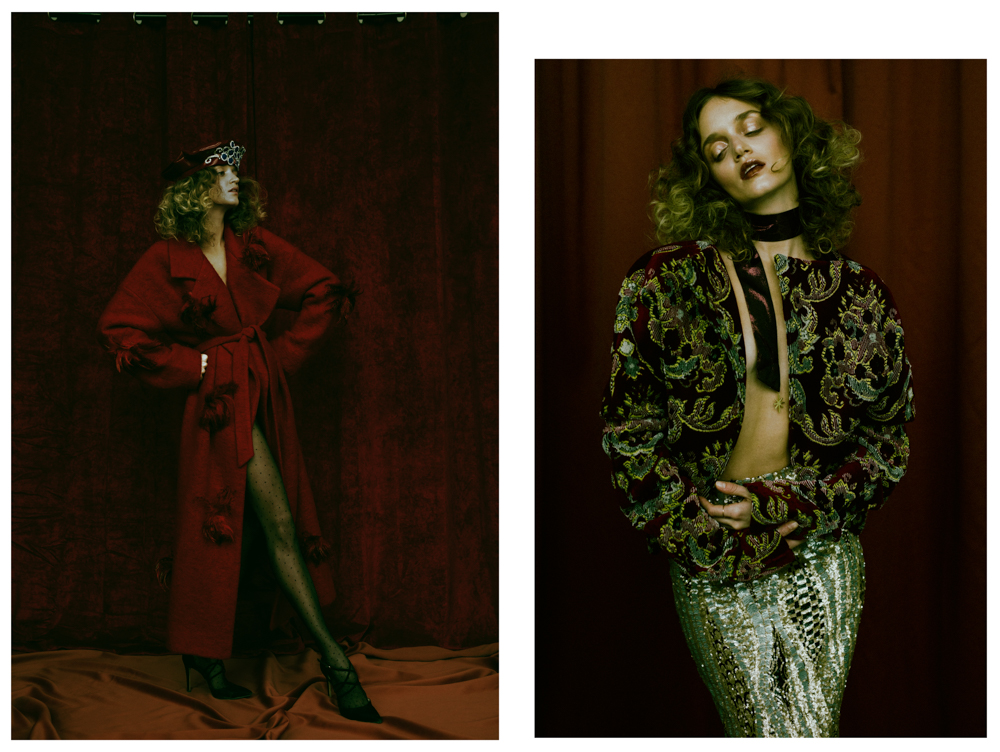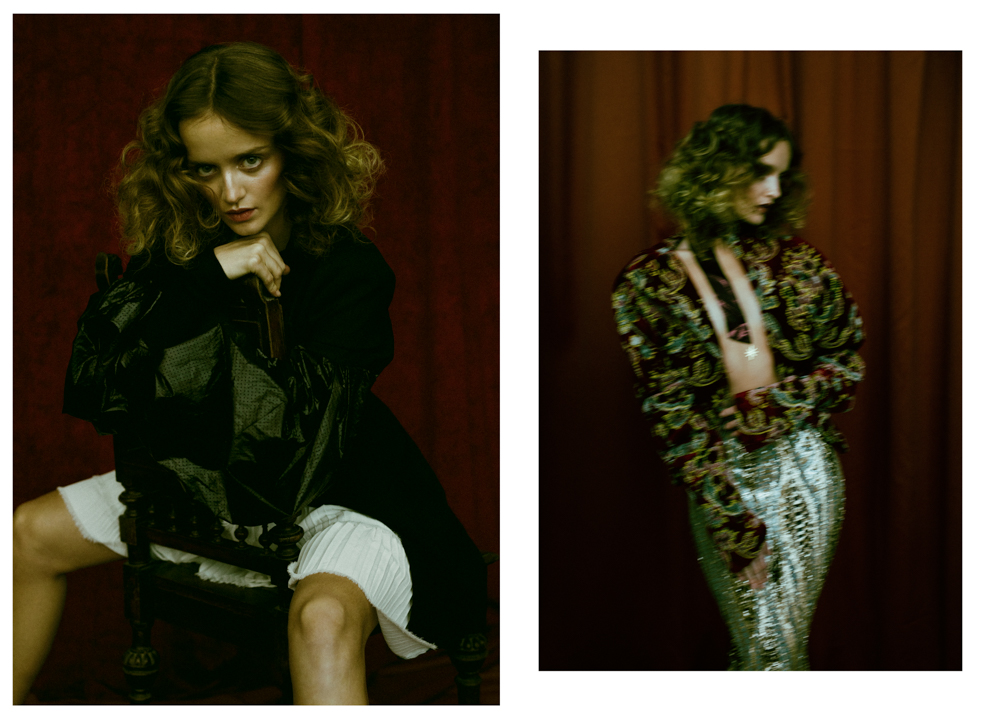 A KALTBLUT exclusive womenswear editorial. Photography by Aleksandra Zaborowska. Model is Kornelia signed at Gaga Models. Make up by Marianna Yurkiewicz. Hair by Vika May. Style by Milena BekAlarska. Set design by Wojciech Perzyna. Aleksandra Zaborowska born in 1991 in Poland. Graduated The Leon Schiller National Film, Television and Theatre School in Lodz, one of the most prestigious art schools in Europe. Aleksandra specializes in portraiture at the same time being professional fashion photographer. She combines luxury fashion shots with with a delicate touch of emotions and feelings. In Poland represented by Papert Pictures agency. Based in Berlin, Germany. “Our new photoshoot is inspired by paintings. I tried to follow the light and mood which I have seen in Rembrandt’s, Caravagggio’s and Titian’s works. I wanted to add a modern twist so we mixed vintage vibes with actual trends.” says the photographer.