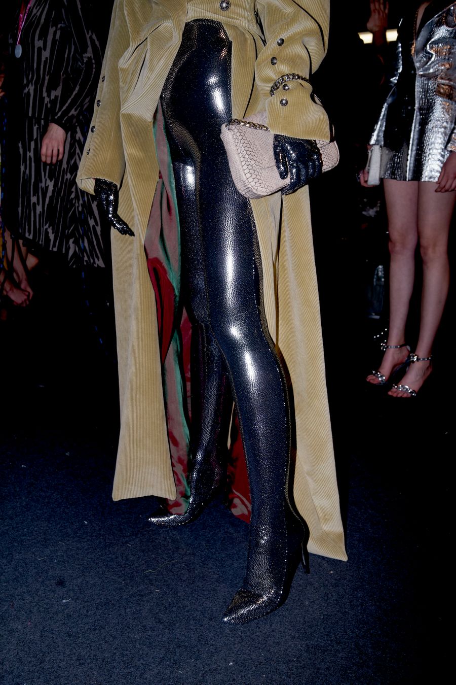Whilst M-Fiction, created by sisters Mateja Lukač and Mia Aleksandra Lukač, gave us the Balenciaga meets Margiela meets Richard Quinn we never knew we needed as liquid textures ruched and rippled in all the right places as PVC and leather dominated the contrasting white runway.