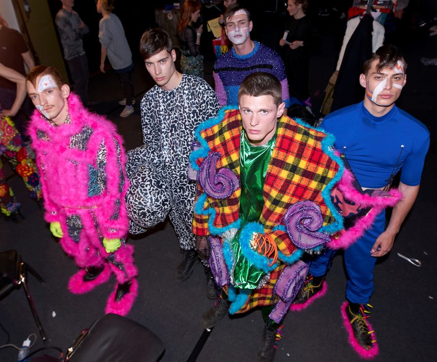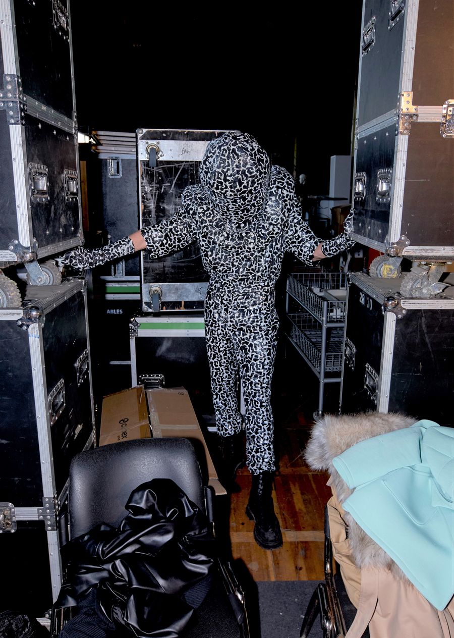 Before Jan Brovč party monstered the shit out of us in a queer club-kid extravaganza we won’t be forgetting anytime soon. Entitled ‘Liquid Endorphins’, electric neon colors, boisterous fabrics, clashing patterns, and aggressive textures based on extraterrestrial beings consumed us from the first look right down to the last. Toy guns, hazmat suits, facekinis, and all.