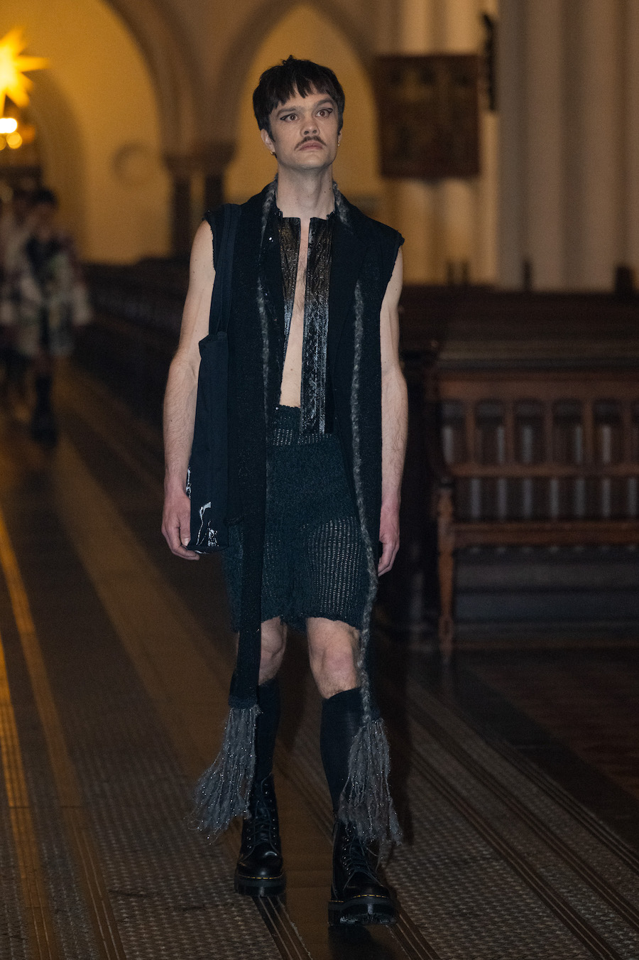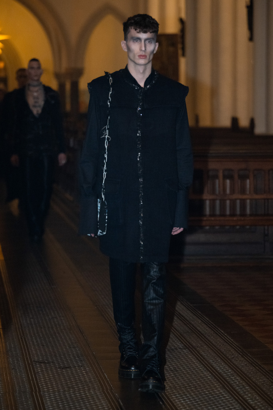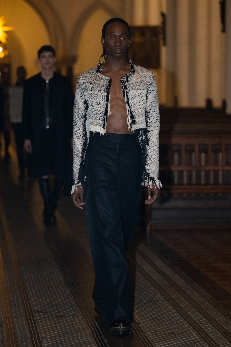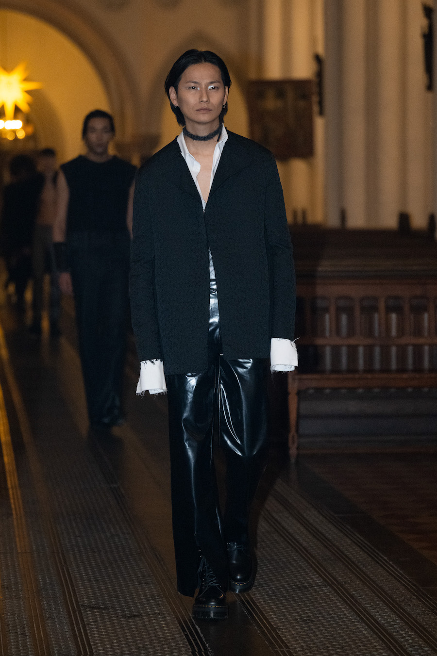 collection in St. Marienkirche on Alexanderplatz. He consciously breaks the typical pace and choreography of a classic fashion show, letting his models pause between candlesticks to give guests the opportunity to look at his designs in peace. The LML studio show was accompanied by an organist who played historical and contemporary works.