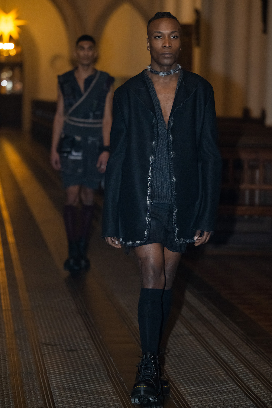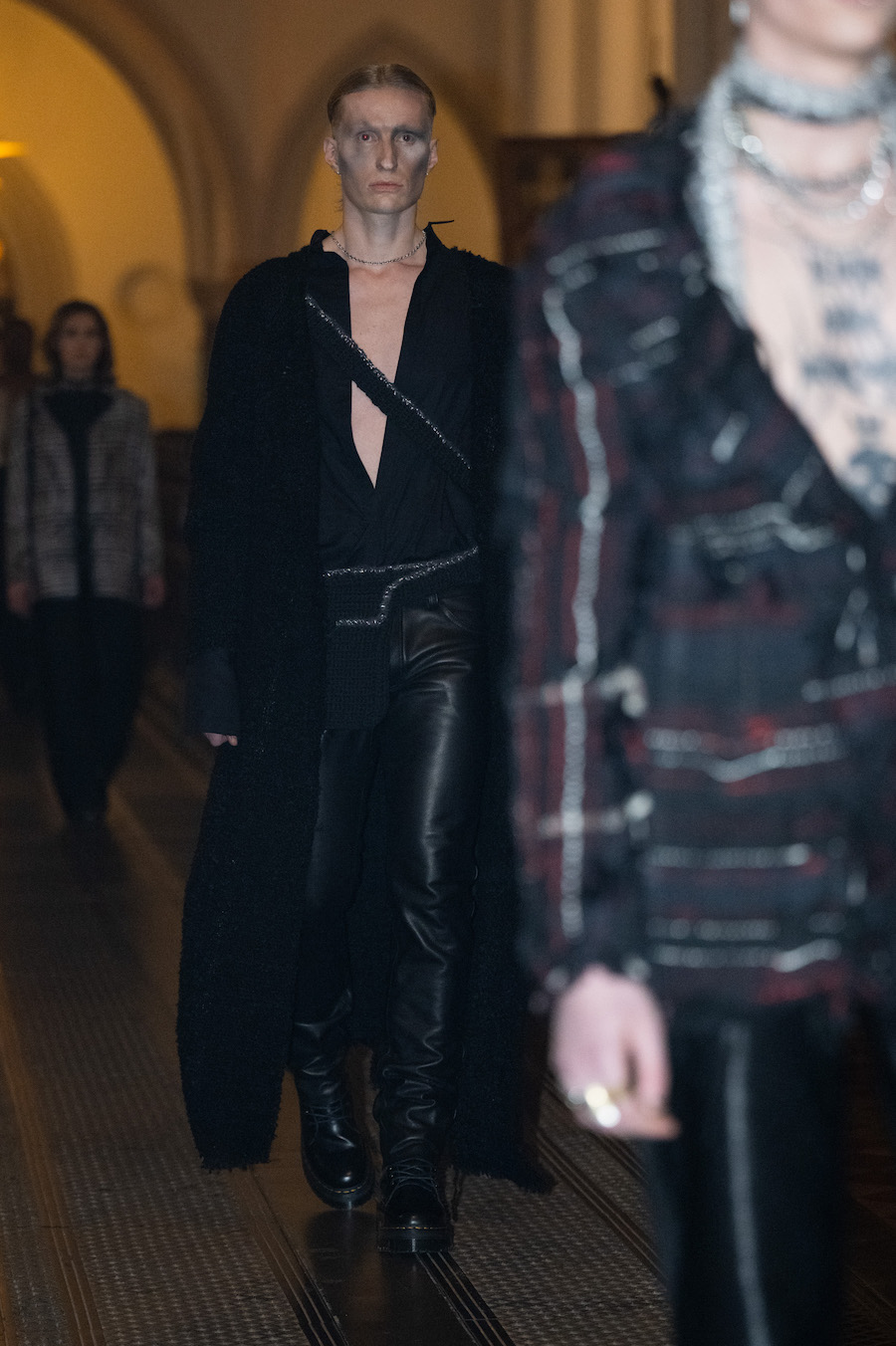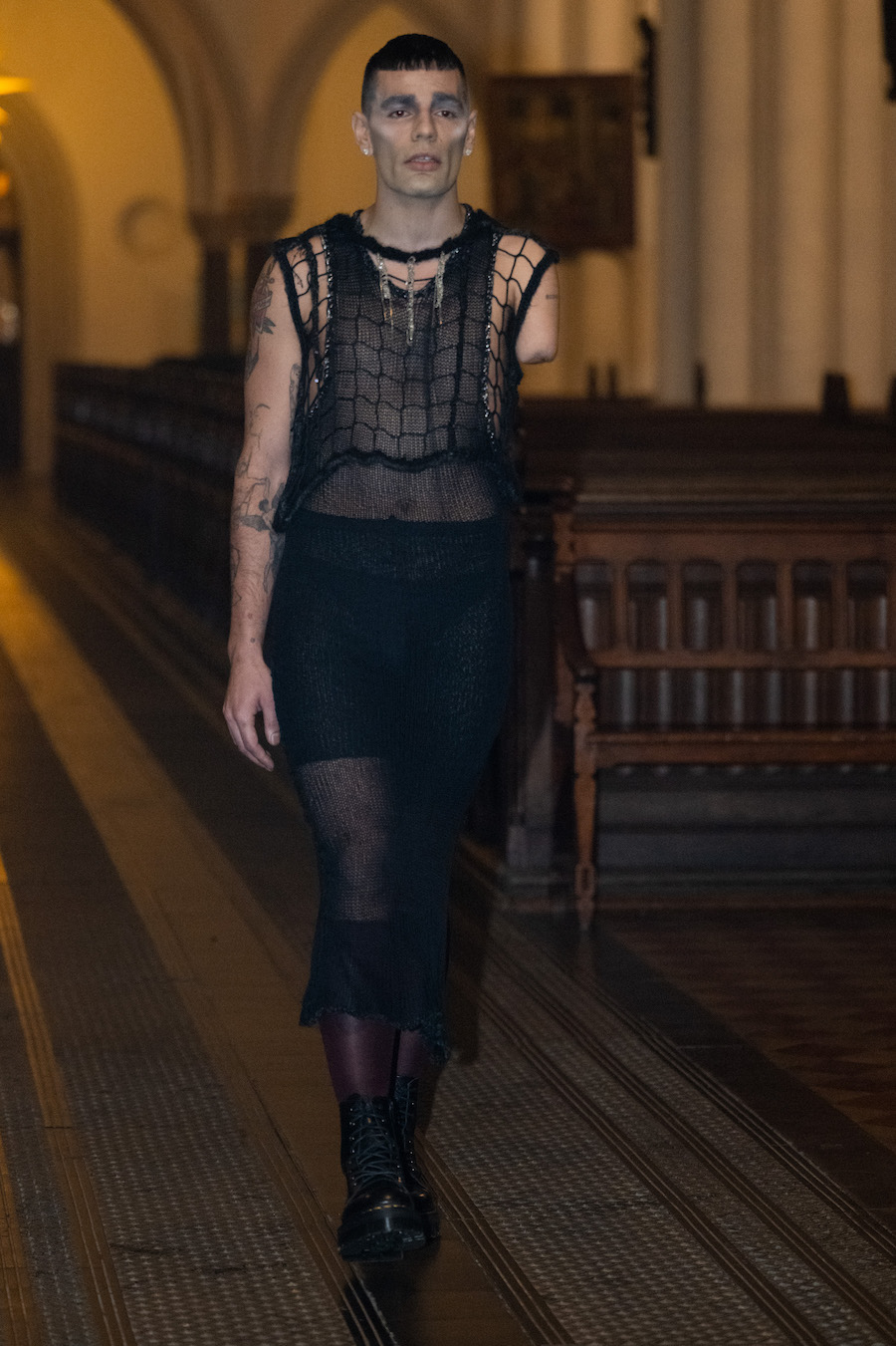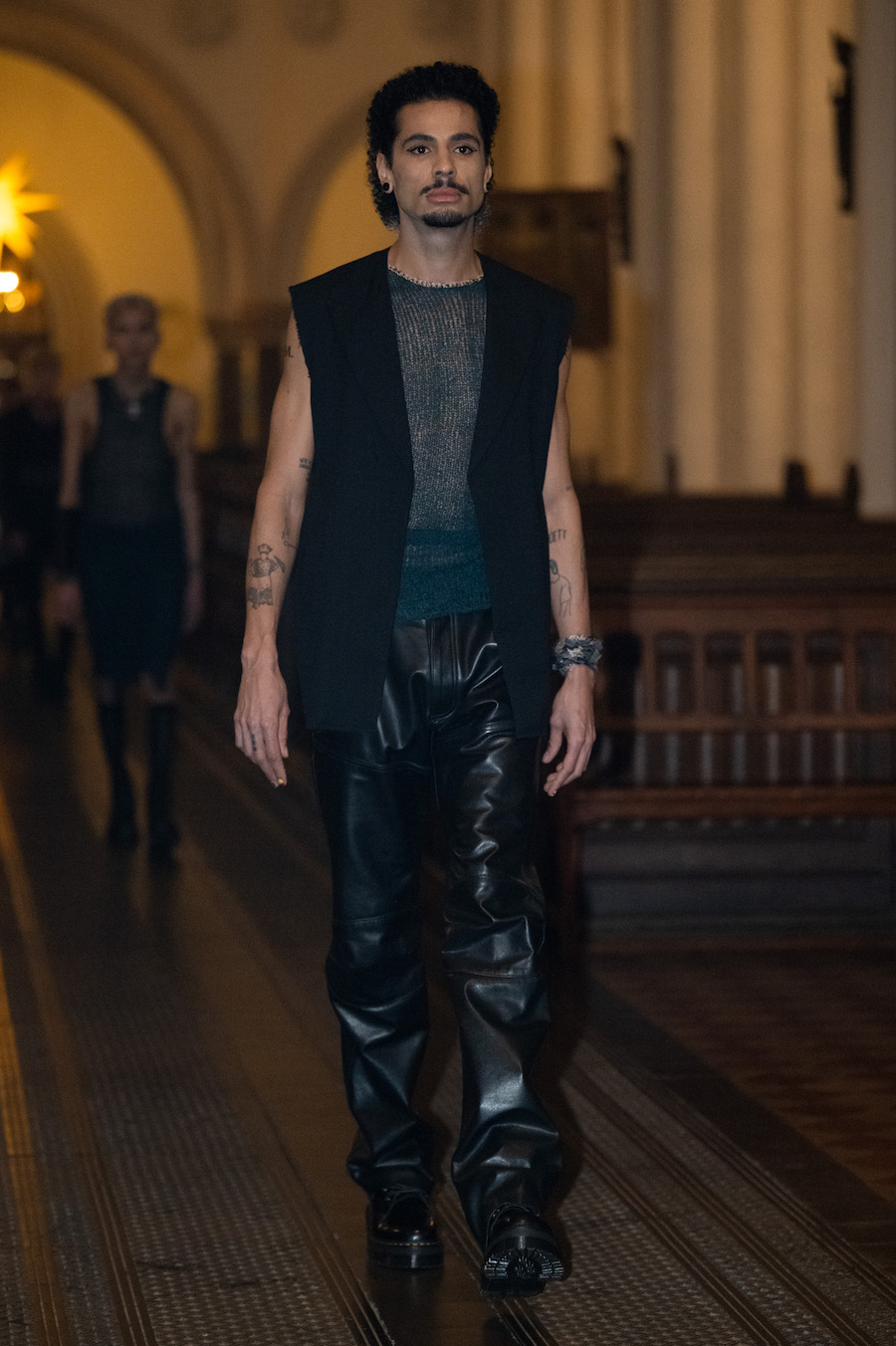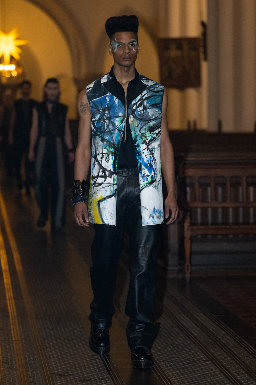 collection in St. Marienkirche on Alexanderplatz. He consciously breaks the typical pace and choreography of a classic fashion show, letting his models pause between candlesticks to give guests the opportunity to look at his designs in peace. The LML studio show was accompanied by an organist who played historical and contemporary works.