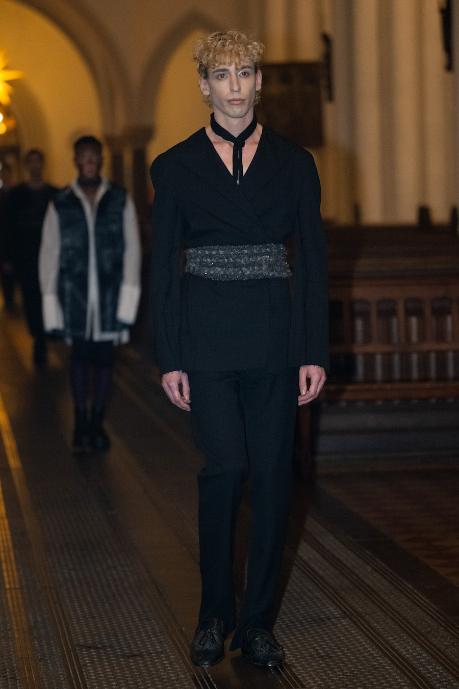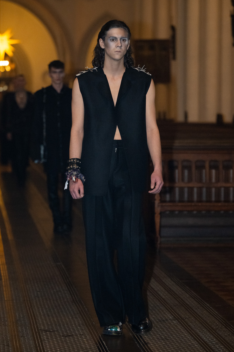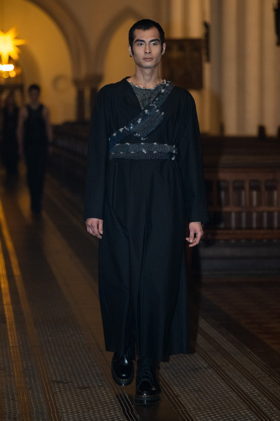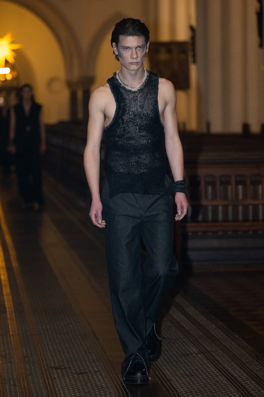 collection in St. Marienkirche on Alexanderplatz. He consciously breaks the typical pace and choreography of a classic fashion show, letting his models pause between candlesticks to give guests the opportunity to look at his designs in peace. The LML studio show was accompanied by an organist who played historical and contemporary works.
