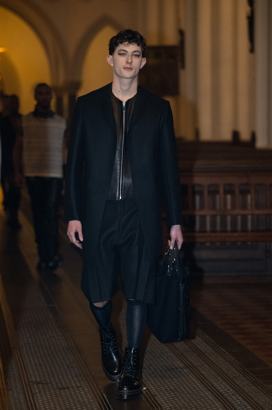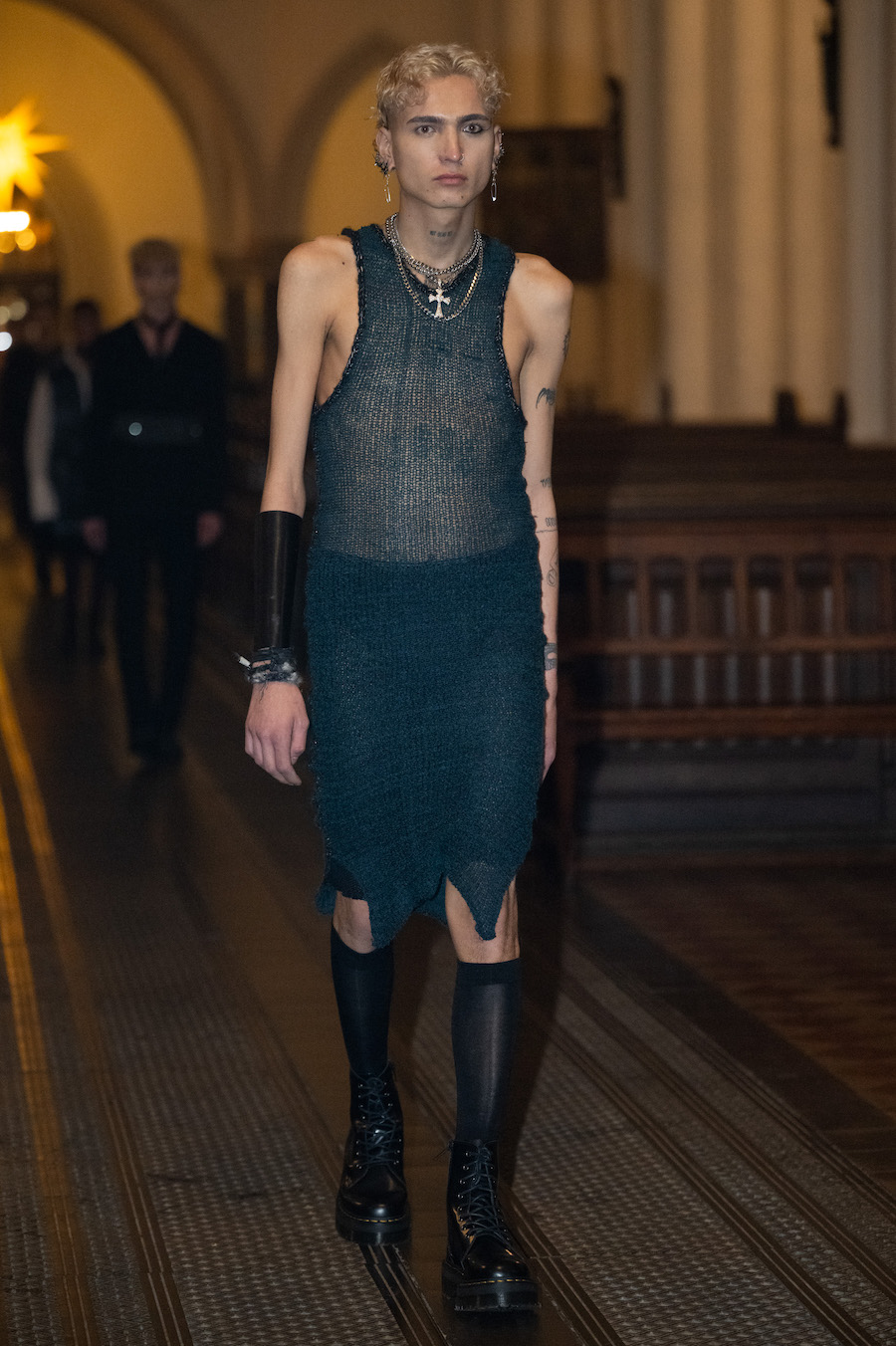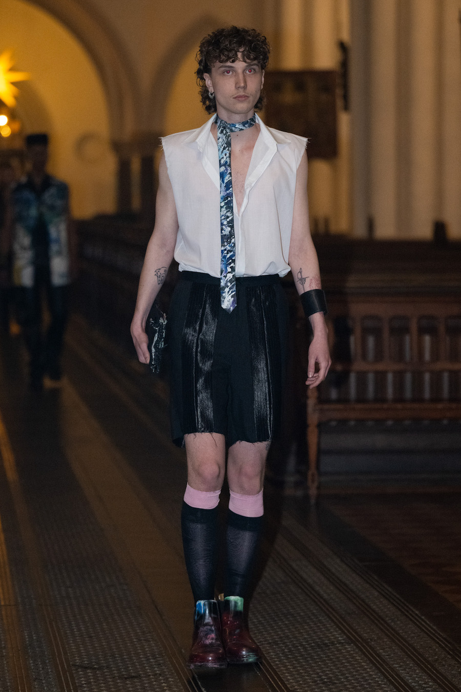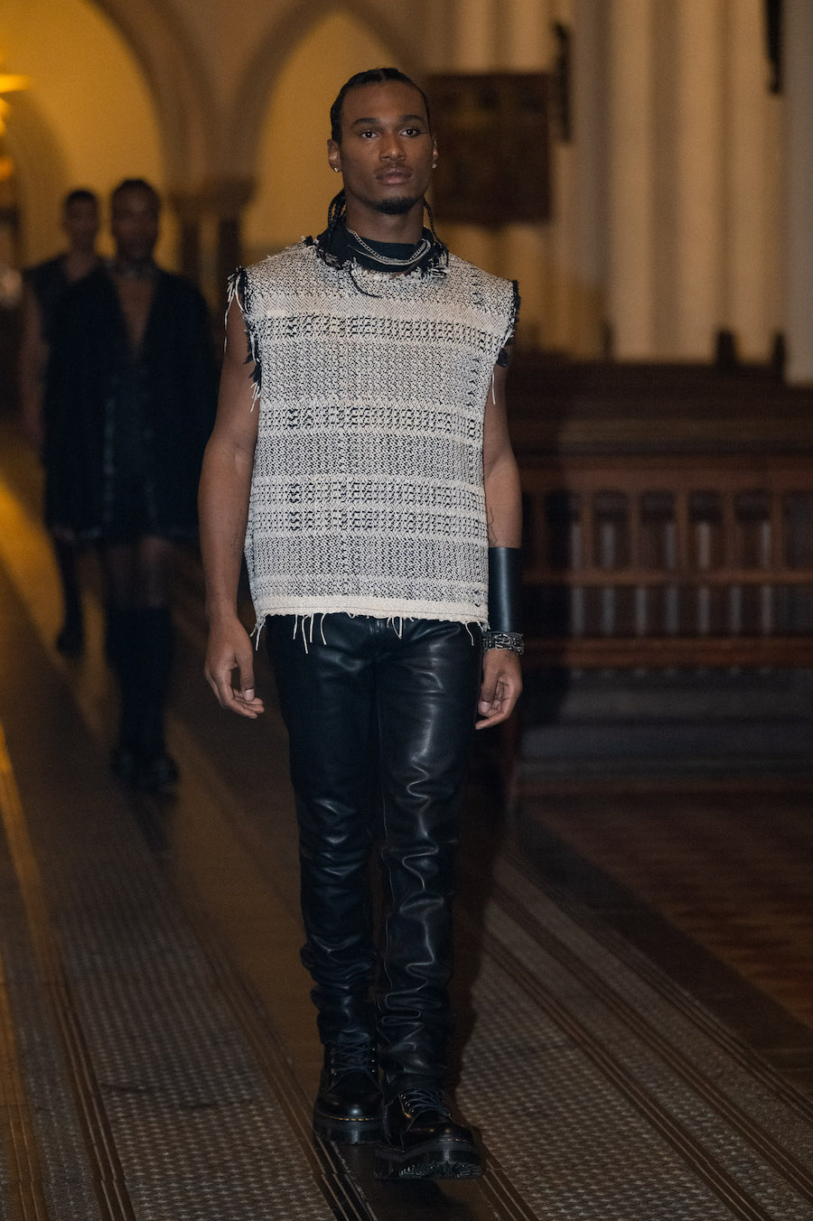 collection in St. Marienkirche on Alexanderplatz. He consciously breaks the typical pace and choreography of a classic fashion show, letting his models pause between candlesticks to give guests the opportunity to look at his designs in peace. The LML studio show was accompanied by an organist who played historical and contemporary works.