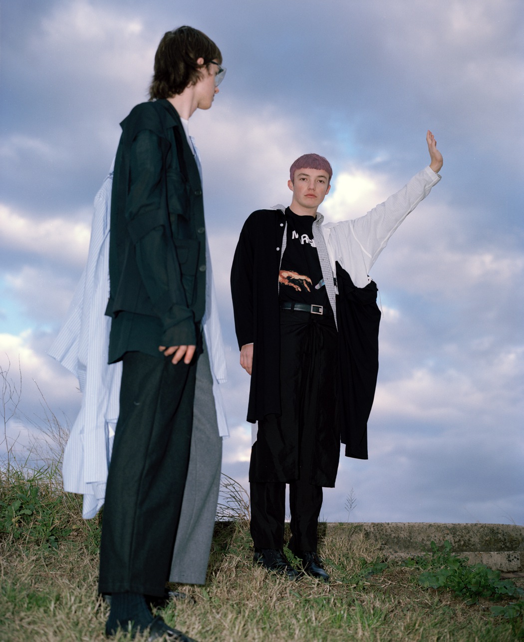 A KALTBLUT exclusive. Photographer Vladimir Kravchenko captured Harry McTavish from Priscilla’s and Nicholas Caldwell from FiveTwenty for us. Grooming by Chris Coonrod. Styled by Elle Hioe. Brands are Undercover, Subtype, Margiela Sneakers, Heron Preston, Yan Lok Chu, Converse, CDG Homme Pants, Double Rainbouu, Vaquera, Doc Marten, Yohji Yamamoto, Balenciaga, Common Projects, Science, Oh Hey Girl, A Tentative Atelier Hat, Van Heusen, Coach, Jordan.